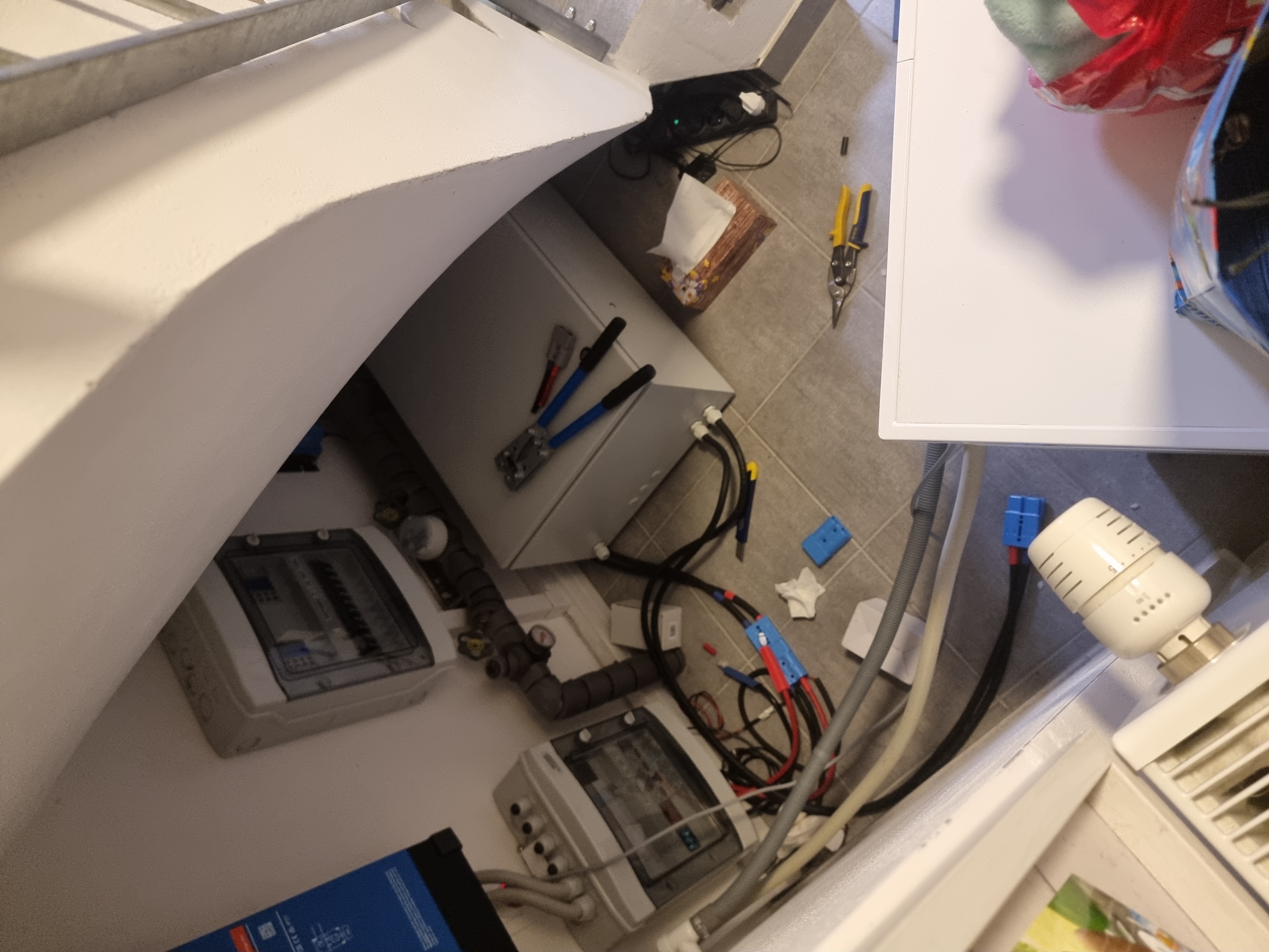 Každopádně zákon schválnosti existuje a v momentě kdy jsem dodělal baterku a přepojil a zatěžoval, tak se odmlčetl internet. Respektive vše jelo, ale data od ISP netekla, takže místo slávy, byl diag a mail. Ale co no i tak mám radost. Jinak ty ložiska na spodku jsou dokonalé, je s tím 10x lepší manipulace než s kolečkama co mají nostnost 70Kg. Tohle jezdí samo a všemi směry hned a ne žádné přemlouvání k otočení všech koleček do jednoho směru, spáry nejsou problém. Ocenil jsem i uzavřenou krabici, na kterou jsem si sprostě lehl a zajel ladit napětí pod schody na zdroj