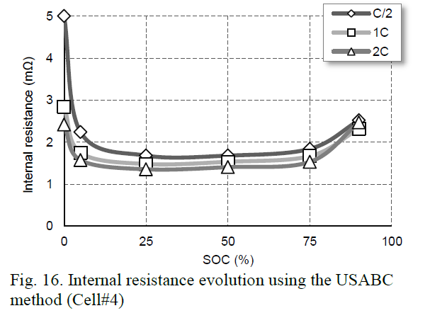 Měřil jsem při SOC cca 70%. Jak cituješ z té studie, tak ta právě pojednává o měření DC odporu různými metodami - VCD (to jsem použil já), DC pulzy a metodou dle USABC (Americké konsorcium výrobců baterií), což je zase nějaká obdoba měření pulzy. Probírá se situace hlavně při nabíjení.
