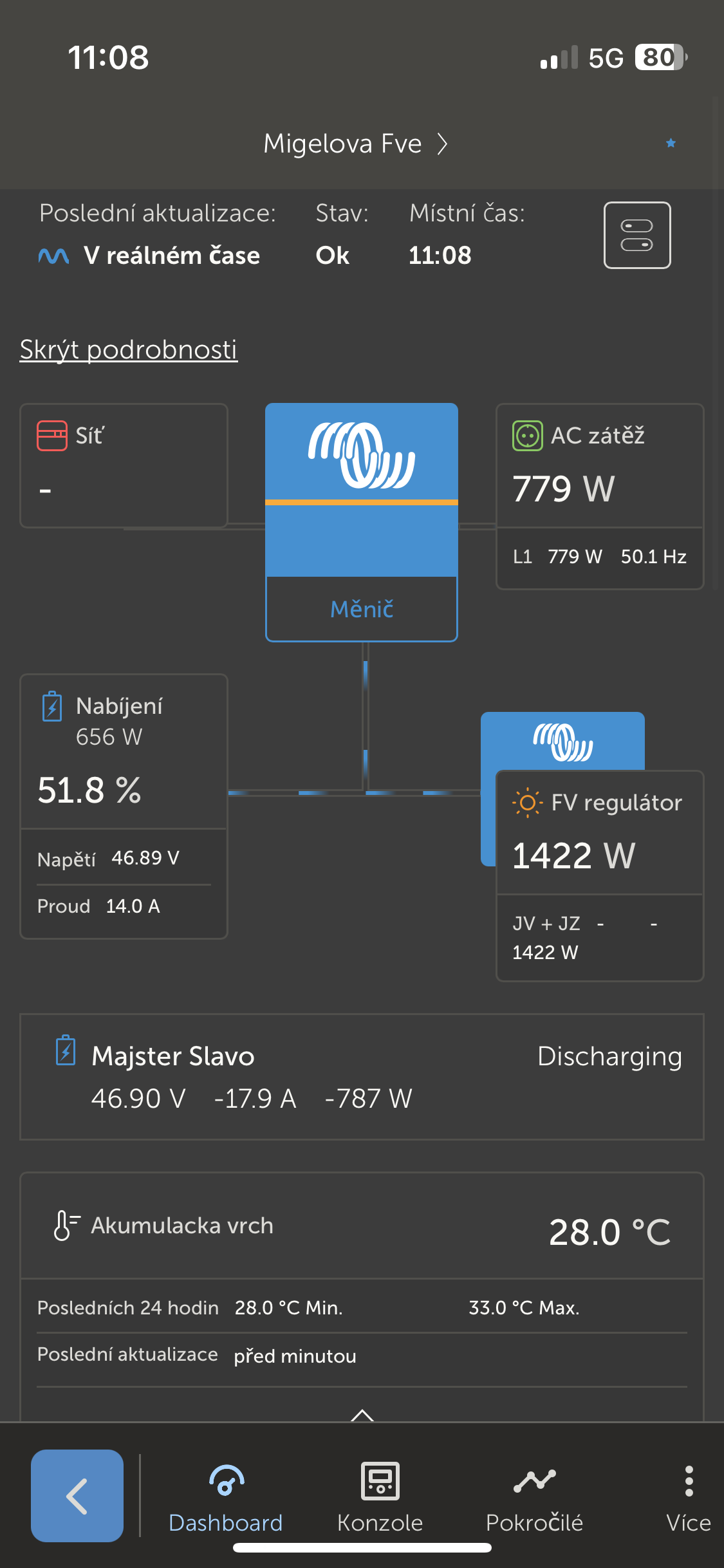 Jsem na tom podobně, jen s tou sobotou jsi nejsem jist.unicast píše: čtv zář 25, 2025 11:07 amTak teprve dneska to začala být opravdová bída, výroba pod 100 W, baterky zatím na 52.4 V, takže do soboty to vydrží, ale dobrý pocit to rozhodně není.