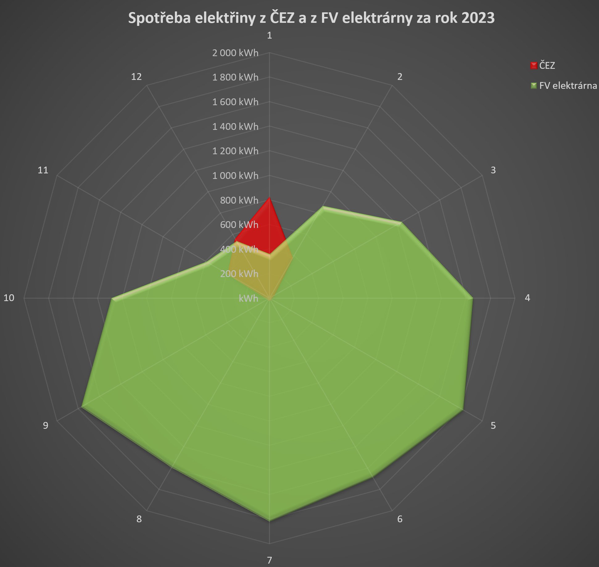 20kWp v panelech rozdělených mezi východ, jih a západ. Do osmi stringů.
