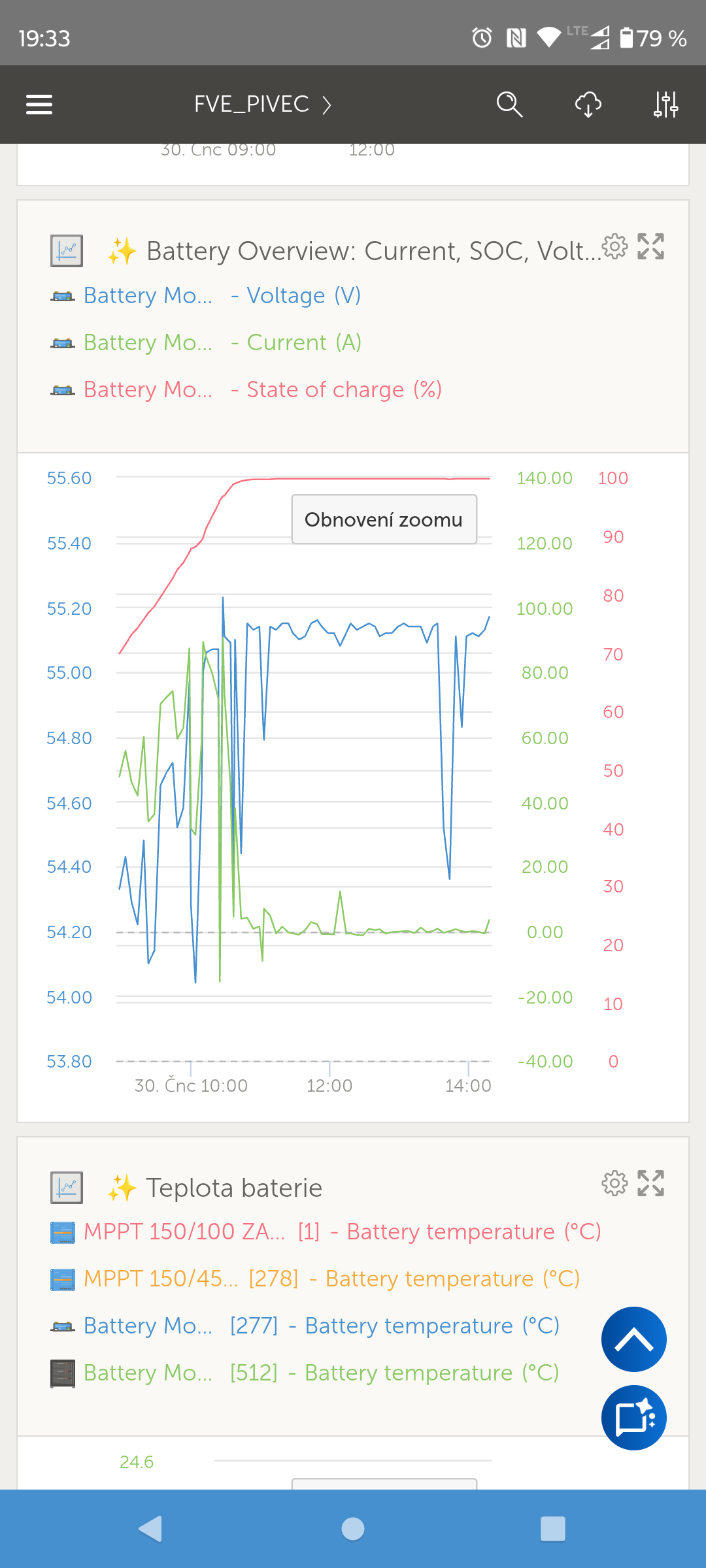 Z mého velmi nezkušeného pohledu se to chová zcela předvídatelně a všechna data - až na SOC za včerejšek - sedí a vše pasuje správně za ty 2 dny.