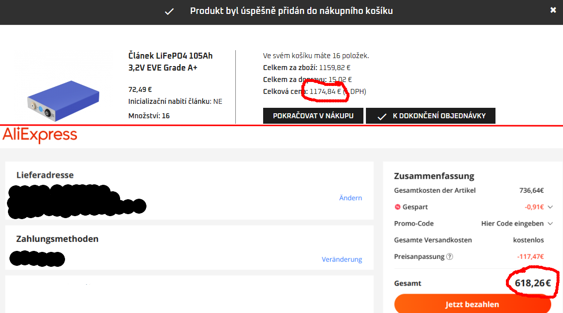 Len tak pre zaujímavosť, aká je cena 16ks REPT 280Ah zo všetkým z Aliexpressu od tvojich overených dodávateľov?JirkaE píše:Souhlasím, ať se vyhýbá kdo chce, je to každého volba.Diablo1st píše:Aliexpressu by som sa osobne vyhol, lebo bolo tam aj dosť podvodov.
