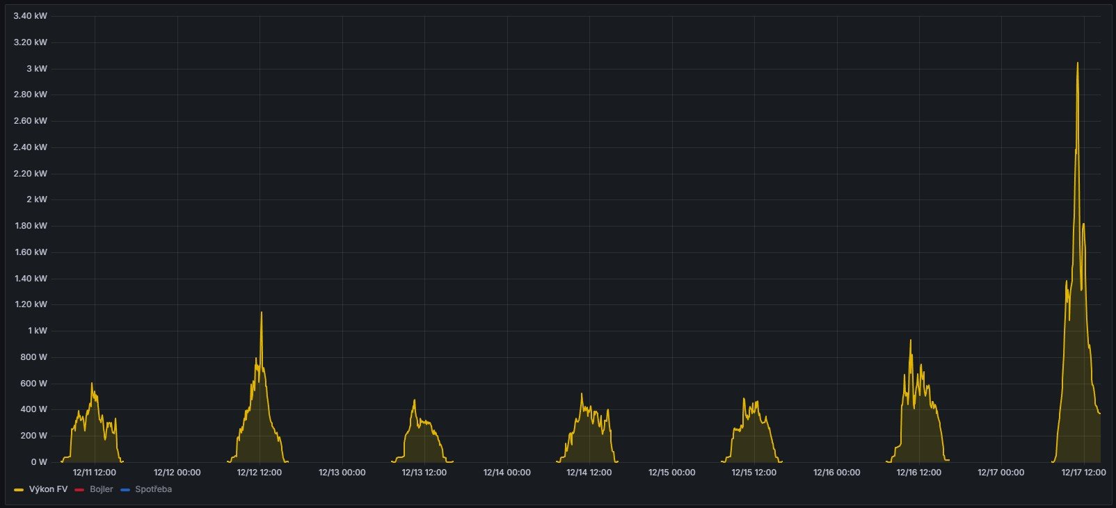 2kW pole pre siton vyrobilo energie tak pre 1 LED ziarovku, takze nahrievam iba jeden bojler z DS a 7,3kW vyrobilo akurat na reziu menica.