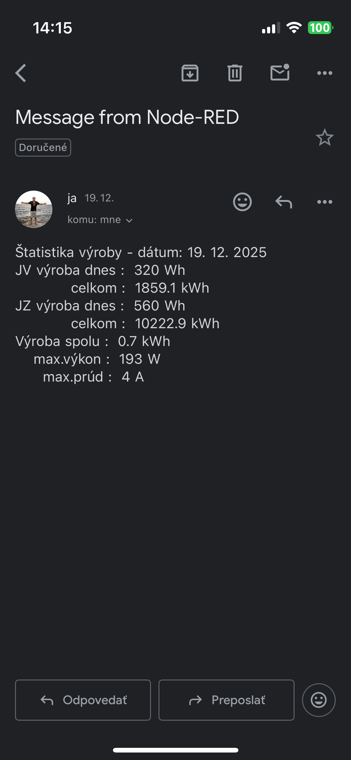 Je to mail z nodered (screenshot v mobile) a je to uuuuuuuuuplne zadarmo.