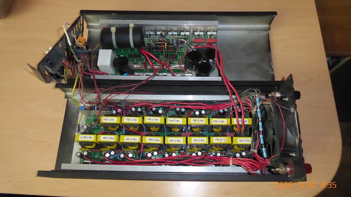 jak může vypadat DC->AC měnič po 21,6MWh AC ? U mě takhle : A ještě detailní foto řídící desky HVDC->AC strany : Mám dojem že začínají trochu hučet ložiska ventilátoru
