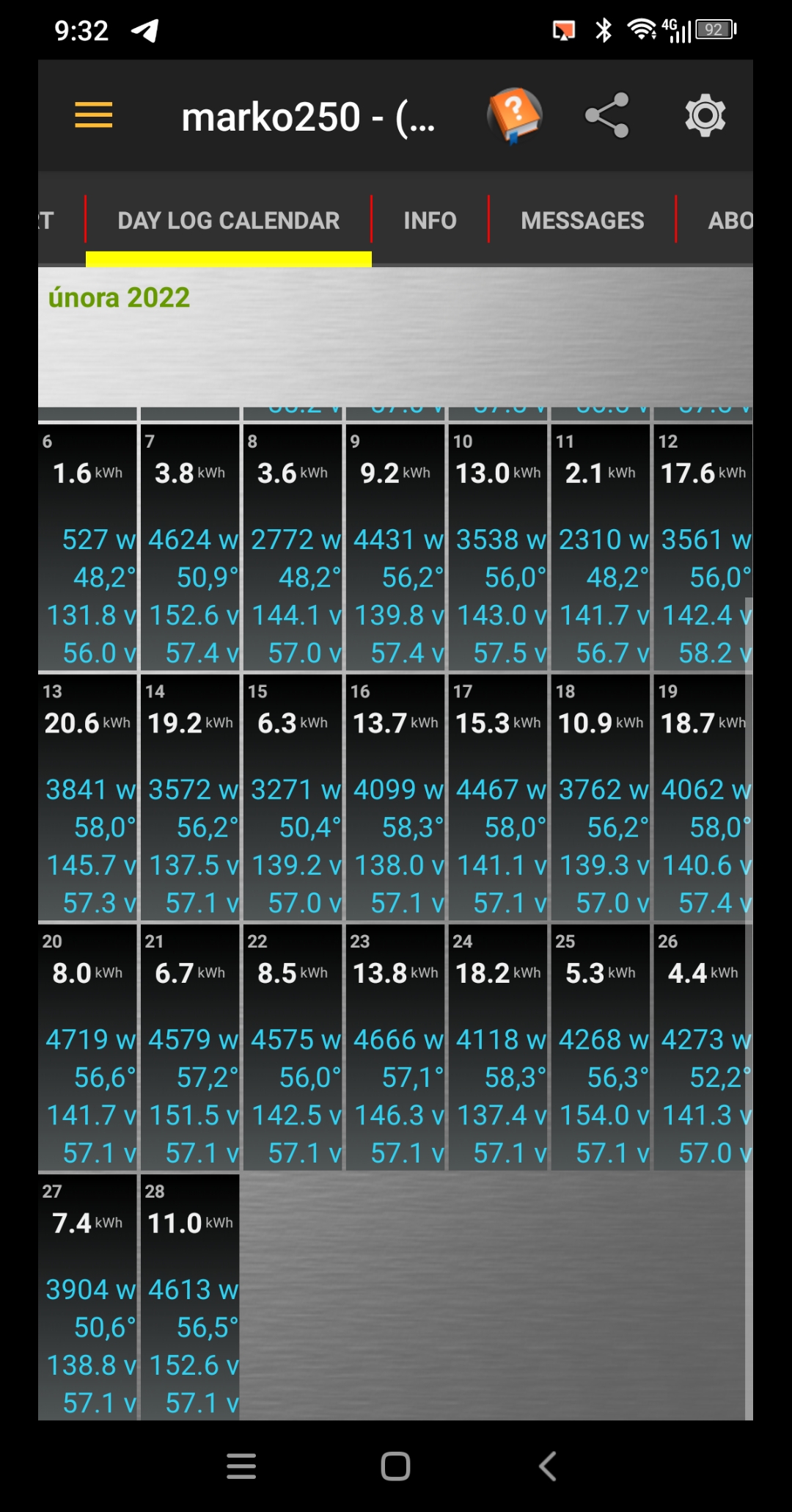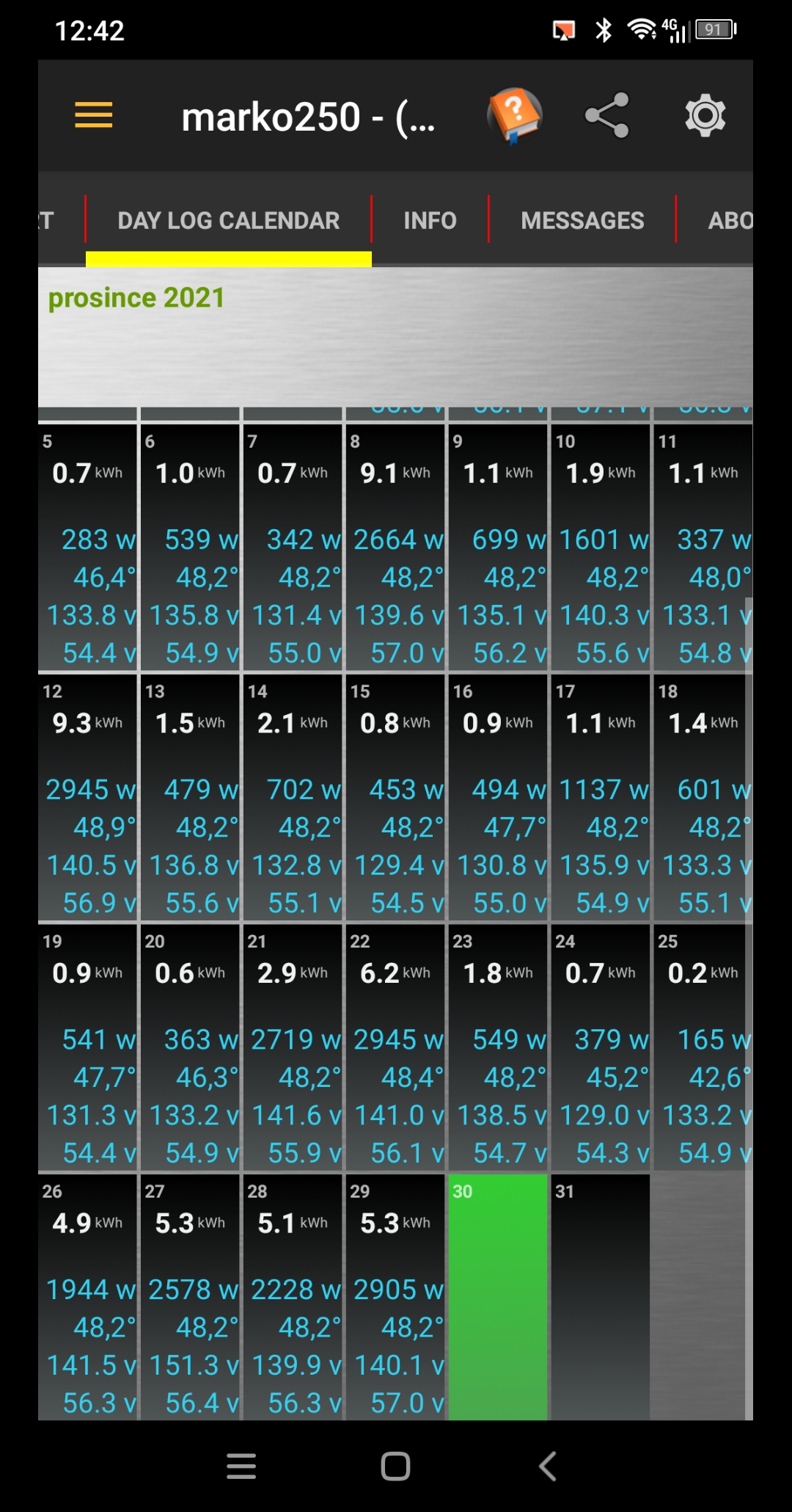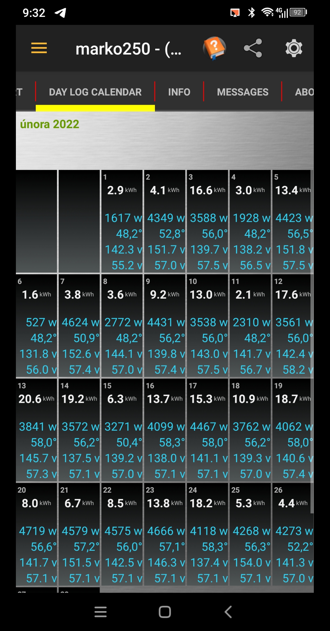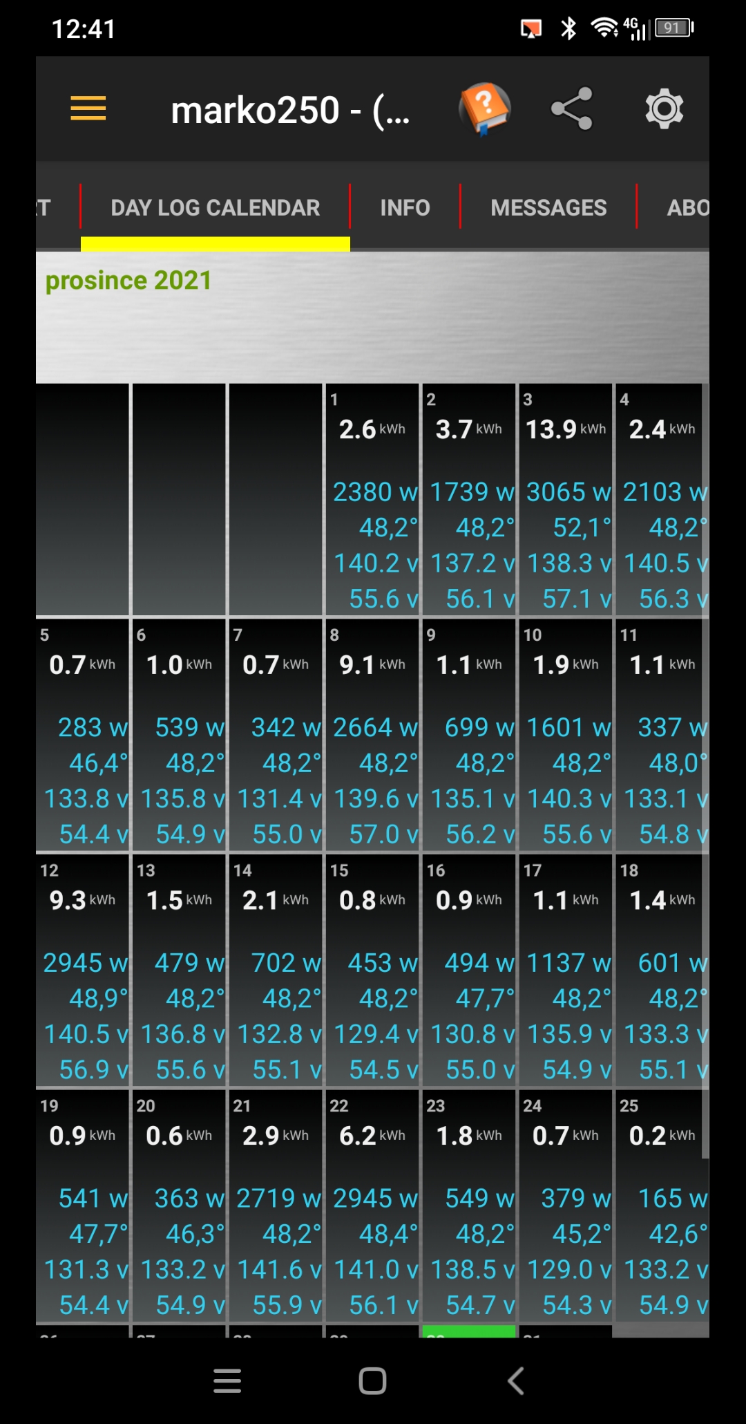 Já jsem se díval před cca 2 dny a měl jsem za prosinec vyrobeno a spotřebováno něco okolo 100kWh ze 10600Wp.Na střední Moravě dobrý.Třeba posledních 48hodin jsem OFFgrid.