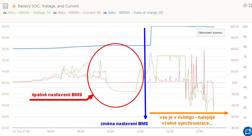 glottis: Super, tak už jsme se toho dobrali a já též srovnal v diskuzi ..glottis píše: stř črc 30, 2025 11:10 pmRadar: njn kdyz ty preposles cizi screenshot bez citaceto se to pak spatne paruje kdo co poslal a ci je co. Kazdoapdne i s tim co tam mel by se to syncnout melo. Uz v abs fazi tam mel vic jak 53,6V a pokud by splnil ty dalsi dve podminky, resetlo by se to. Problem bude ten proud nebo dlouhy cas a nebo oboje.