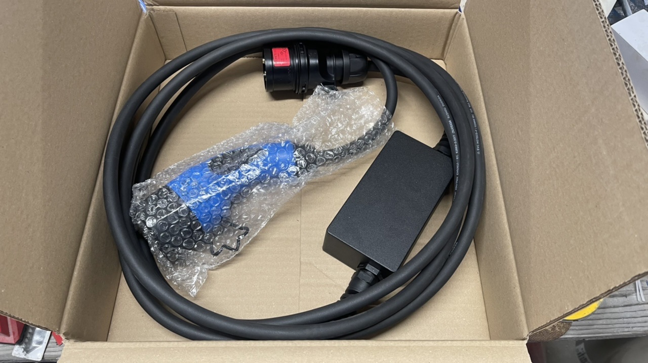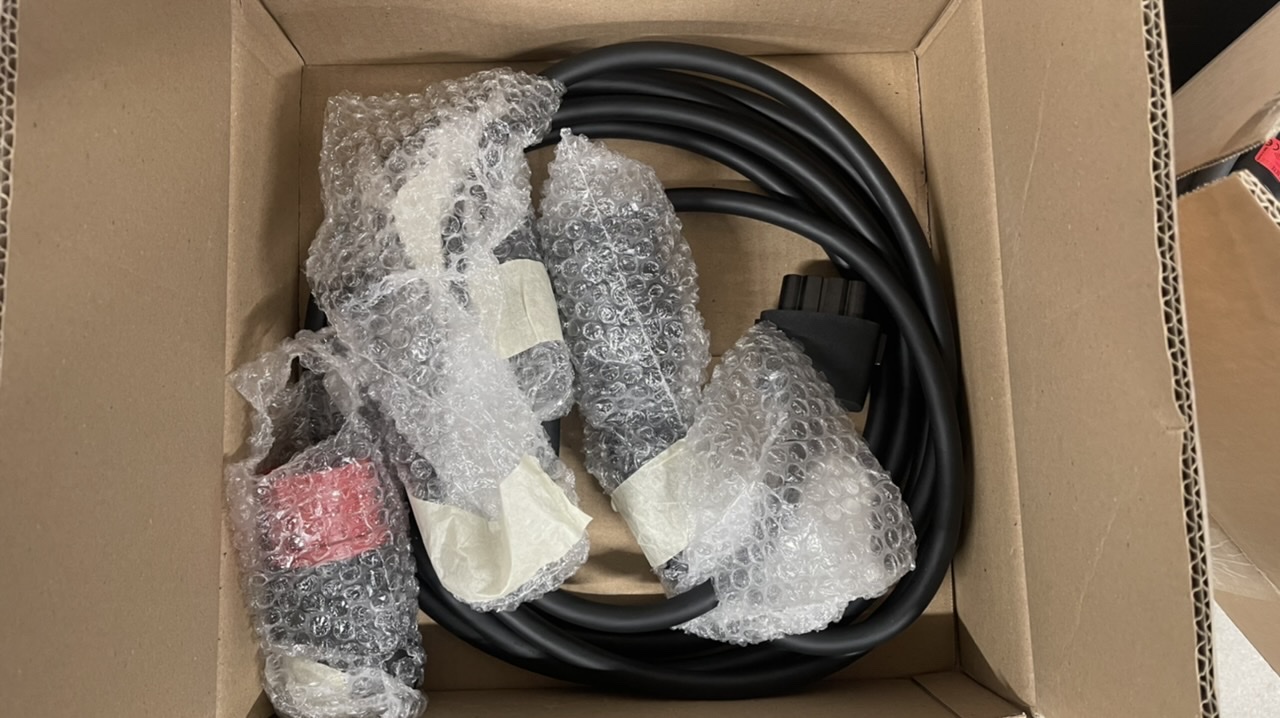 Jeden kabel byl od Tesly, který už v současné době Tesla s auty nedodává a ani nelze samostatně koupit, druhý byl od firmy Sampro.