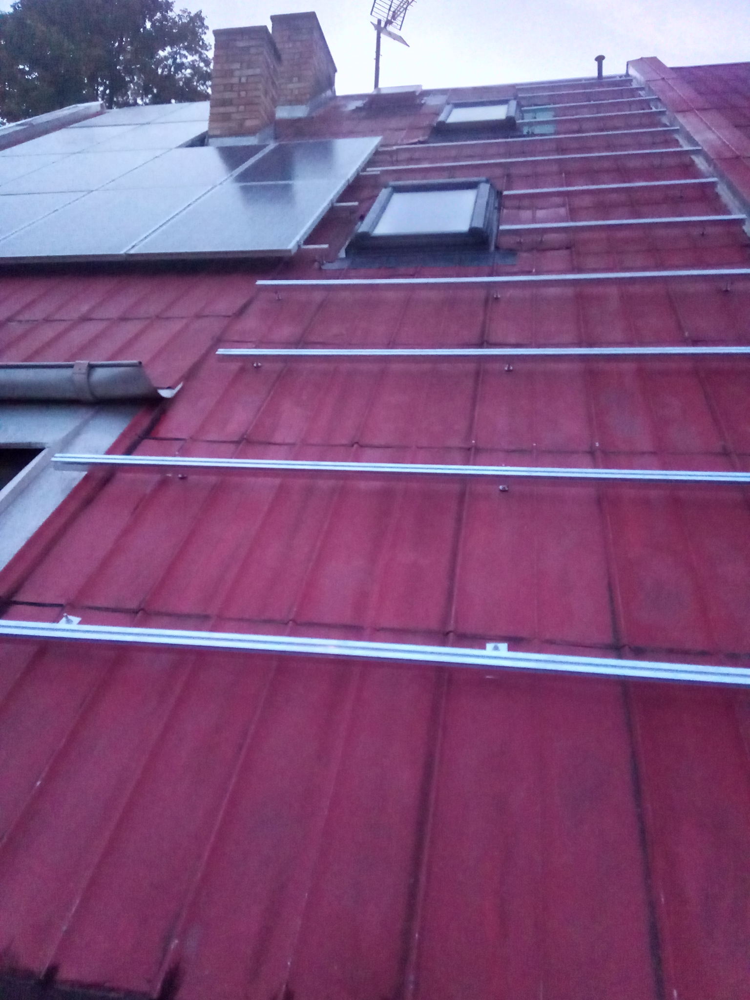 Před hodinou jsem slezl ze střechy. Odpoledne jsem na střechu šrouboval konstrukci na panely. Stihl jsem to jen tak tak před setměním. Do pátku jsem mám směny, tudíž se na instalaci panelů dostanu nejdříve o víkendu.