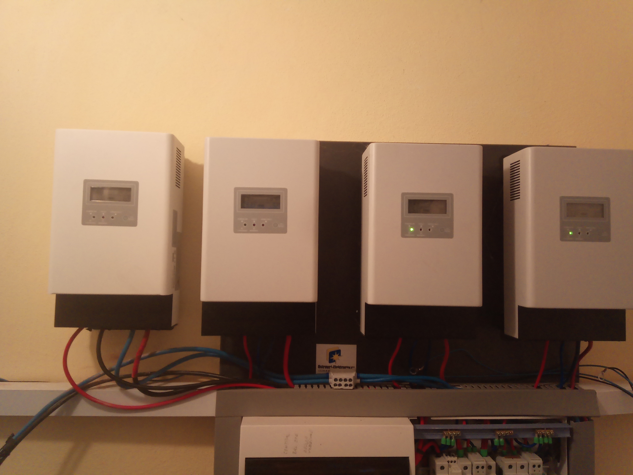 16kWp/JZ-50°/20xChaori 230 ,JV-90°/8xLeapton 650 + <JZ-90° /15xJAsolar / Mono 385, regl Midnite Classic 150<89A> , 1x EASUN <80A> a 1x EASUN <100A>,baterka 17s 54.4VDC LFP4/784Ah<uloží 42kWh>,ŠKATULE 11kW