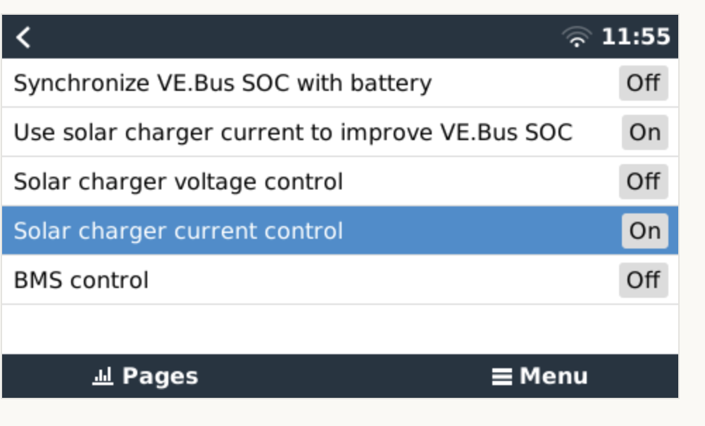 Omezování nabíjecího proudu funguje spolehlivě, když si moje baterka při velkém soc řekne o menší proud tak to cerbo zpracuje a pošle do regulátoru a ten dává přesně maximální nabíjecí proud.