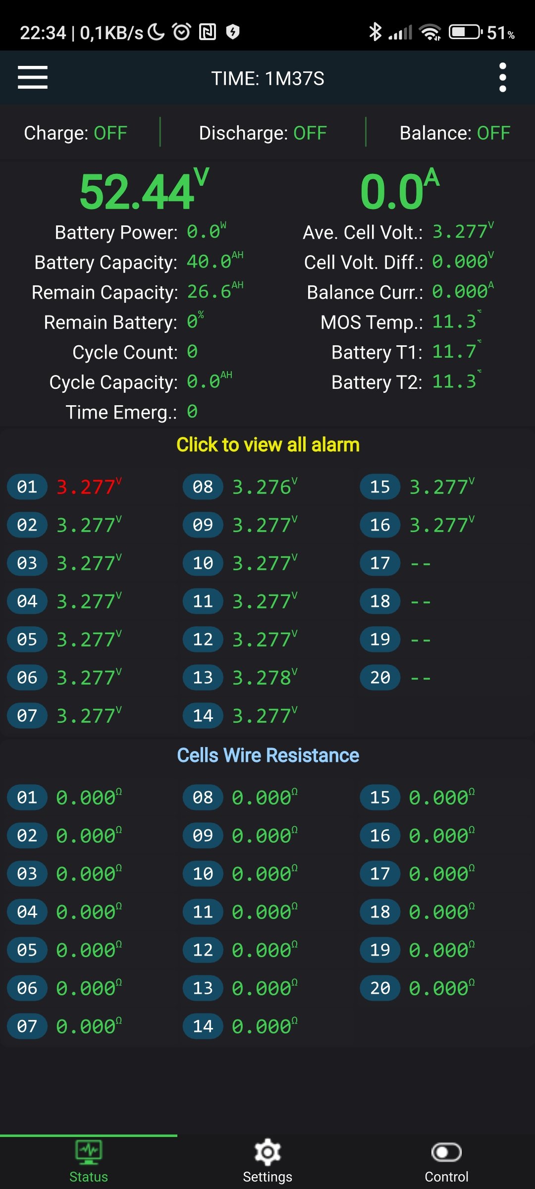 Asi budeš mít problém s BMS, protože máš připojené články, ale nemáš připojený černý vodič, ani silový - pól od BMS k aku !!!, což se nesmí udělat, protože se může poškodit BMS !betmen píše: sob led 27, 2024 9:02 pmpriatelia, dakujem za rady na tomto fore...