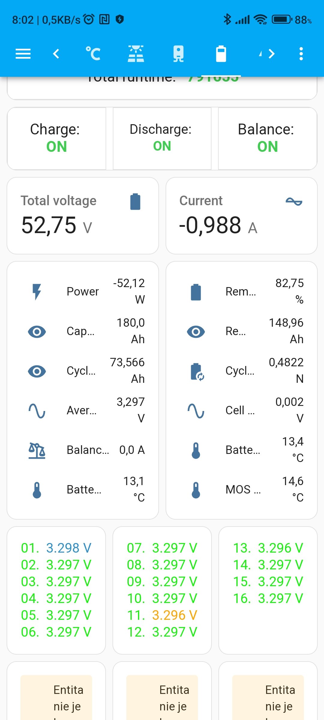 mam nastavene balancovanie na 3.35V, napriek tomu mam pocit, ze dorovnava clanky neustale aj pri nizsom napati.