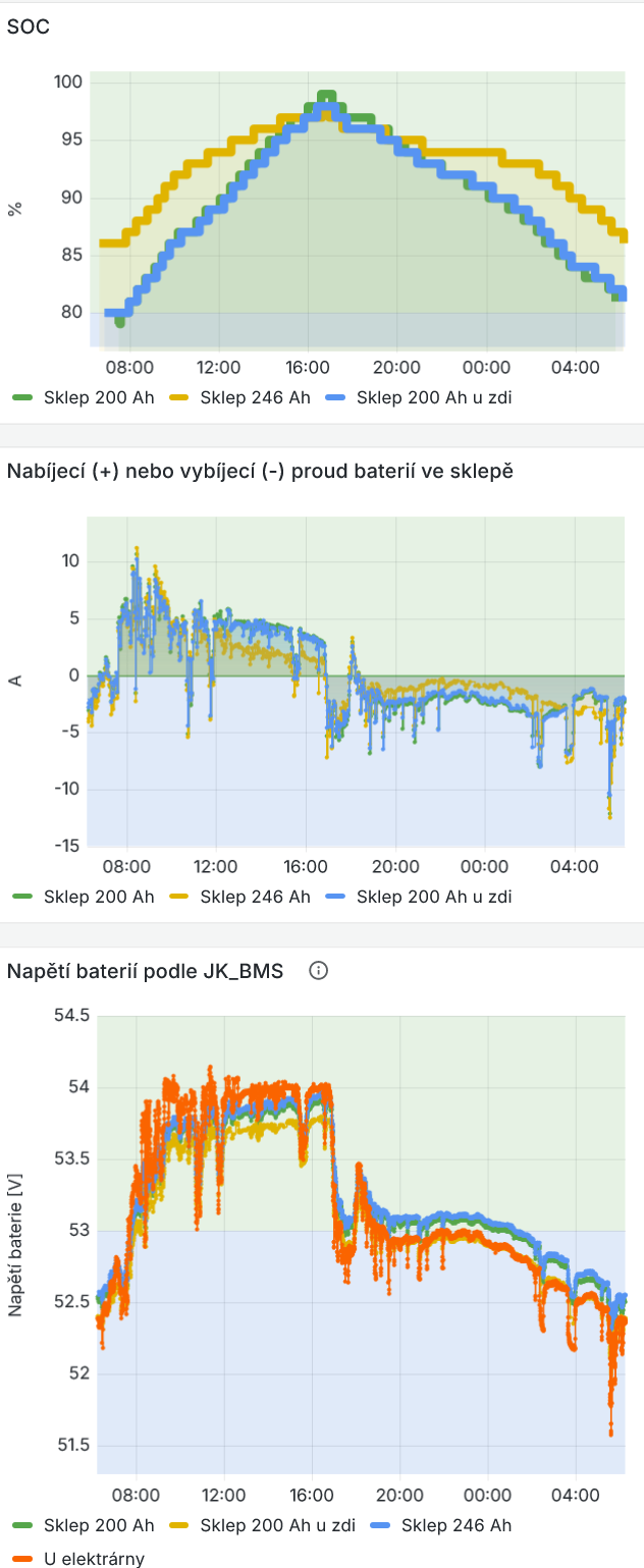 Pokud máš malou spotřebu, tak ti to bude vždy zůstávat na střeše. Podstatné je, abys měl dostatek elektřiny bez toho, že jí budeš odebírat od distributora. Já to řeším tak, že přes zimu nastavím vyšší napětí pro nabíjení baterie. Jestli tobě kapacita baterie nestačí, tak float rovněž nastav na vyšší hodnotu (samozřejmě takovou, aby se články nepřebíjely) a do baterie se dostane víc energie. Ale jestli ti kapacita baterie stačí, tak to nedělej, protože lithium nemá rádo když je drženo na vysokém napětí (zkracuje se jeho životnost).gold1 píše: úte dub 16, 2024 8:28 pmmezi 8:40 a 9:10 je nadherne videt kolik toho zustava na strese kdyz nezapnu nejakou spotrebu.