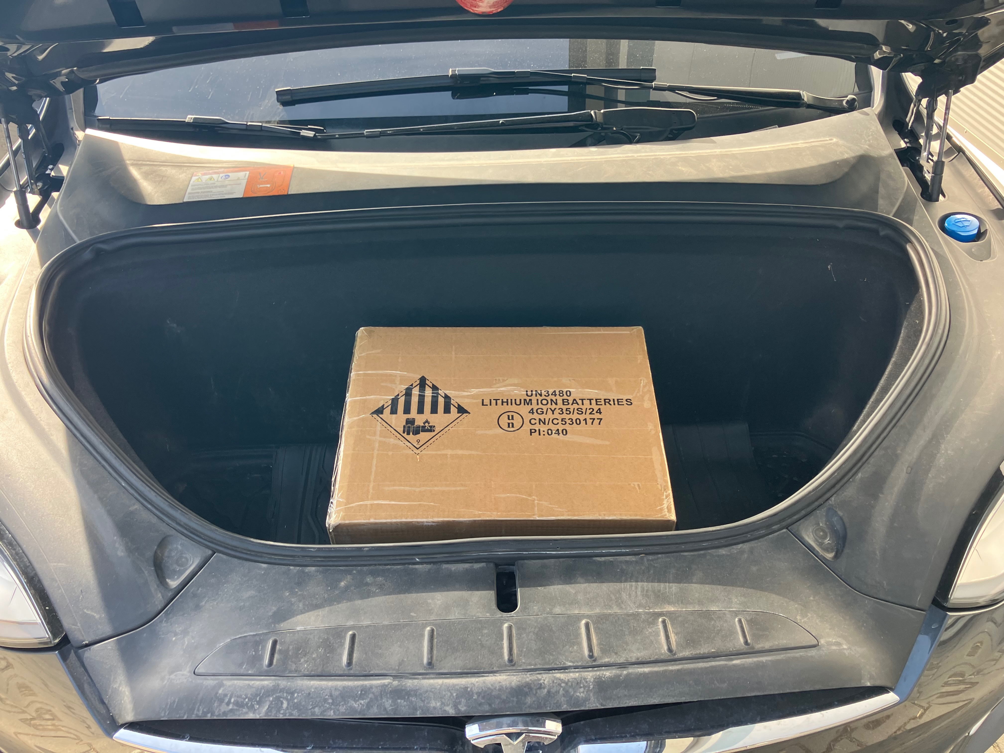 30 balíkov vôjde do Tesla X, jeden do predného kufra a 19 balíkov do vozíka, 1250 kg spolu.