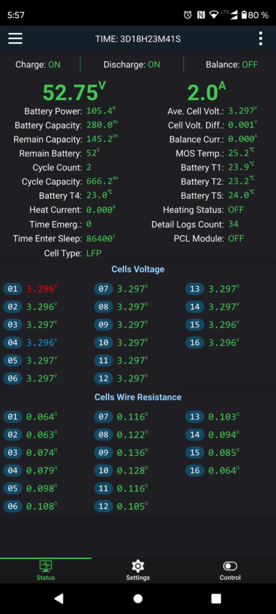 EVE 280Ah (A Grade). Ale překvapil mě ten větší rozptyl vnitřního odporu. Jinak jsou již pěkně srovnané a vybalancované.