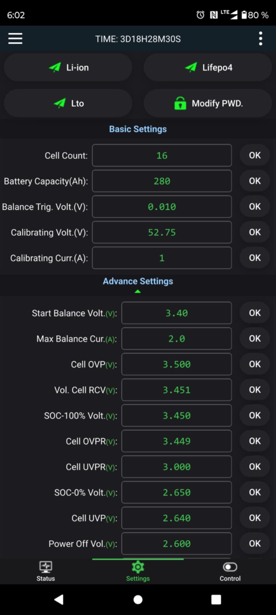 Ale ak mas shunt tak bms nedavaj ako hlavny snimac baterie.Bms hlavne nastav na krajne hodnoty baterie a shunt nastav na prevadzkove hodnoty.To znamena to ze shunt nastavys o nieco menej ako mas nastavenu bms, to aby ti bms nahodou neodpojila baterku v tej najnevhodnejsej chvili.