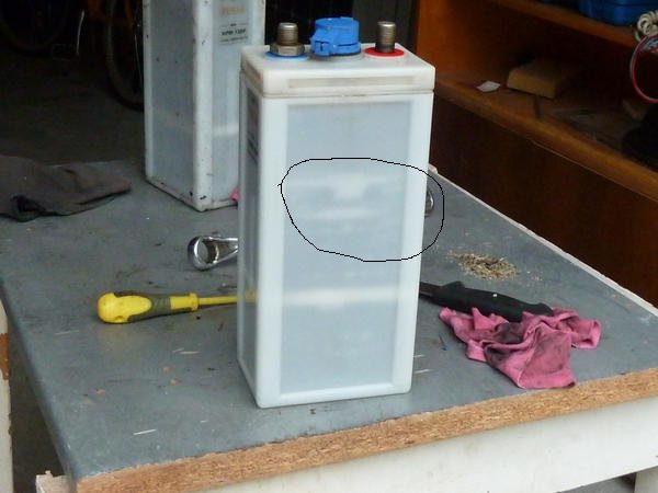 Na hladině elektrolytu by měla plavat vrstvička speciálního oleje (je možné že to je ten LIOH nebo je pro zvýšení vodivosti) který zabraňuje pronikání CO2 do elektrolytu. Je možné že se tento olej při převrácení z některých článků vylil.