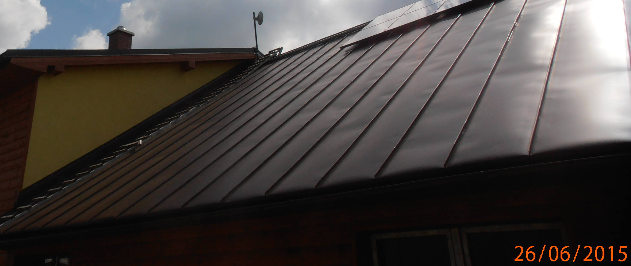 Než jsem to stihl provést tak dne 25.7.2015 vletěl blesk asi do stožáru antény. V 13:11:56 přišla poslední informace o elektrárně do monitoringu. Bohužel majitel i po mém neustálém naléhání a připomínání dosud nenechal dodělat hromosvod. Nejsou udělané jímače ani svody ze střechy, připravené je pouze uzemnění. Panely jsou uzemněné (a tedy i plechová střecha s anténou) pouze záporným pólem kabelové trasy vnitřkem domu dvěma žíly kabelu AES 4x35.