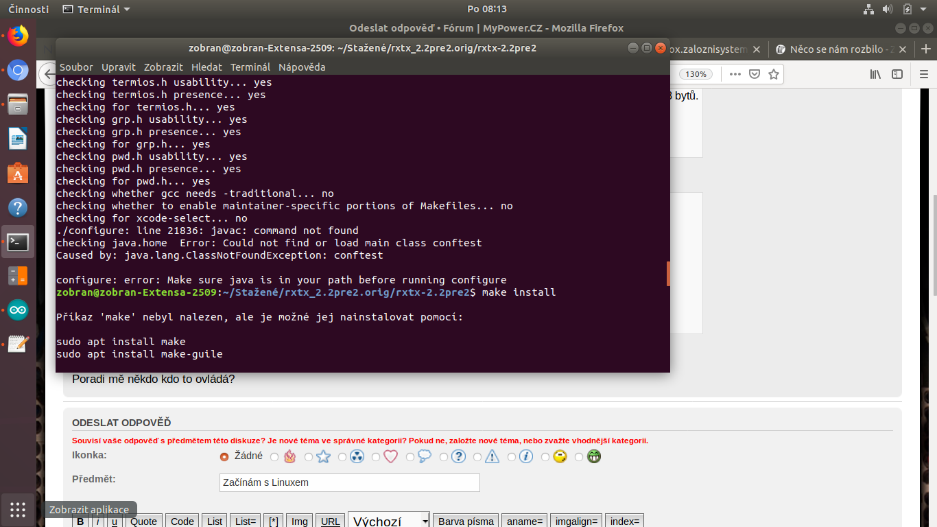 Jsem na to levej, Linux snad nepochopím, je snad jen pro odborníky?zobran@zobran-Extensa-2509:~$ sudo ./arduino