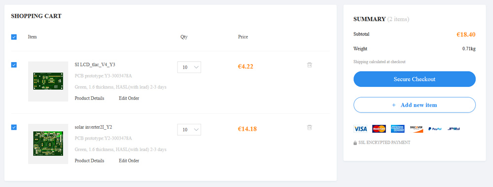 Doprava u JLPCB celkem vyskočila, desky s dopravou a clem nejlevněj za 38.5USD europacket, 7usd tax... Ale i tak, proti tomu co stojí mosfety a kondenzátory je to pakatel. Air mail jsem tam ani nenašel.