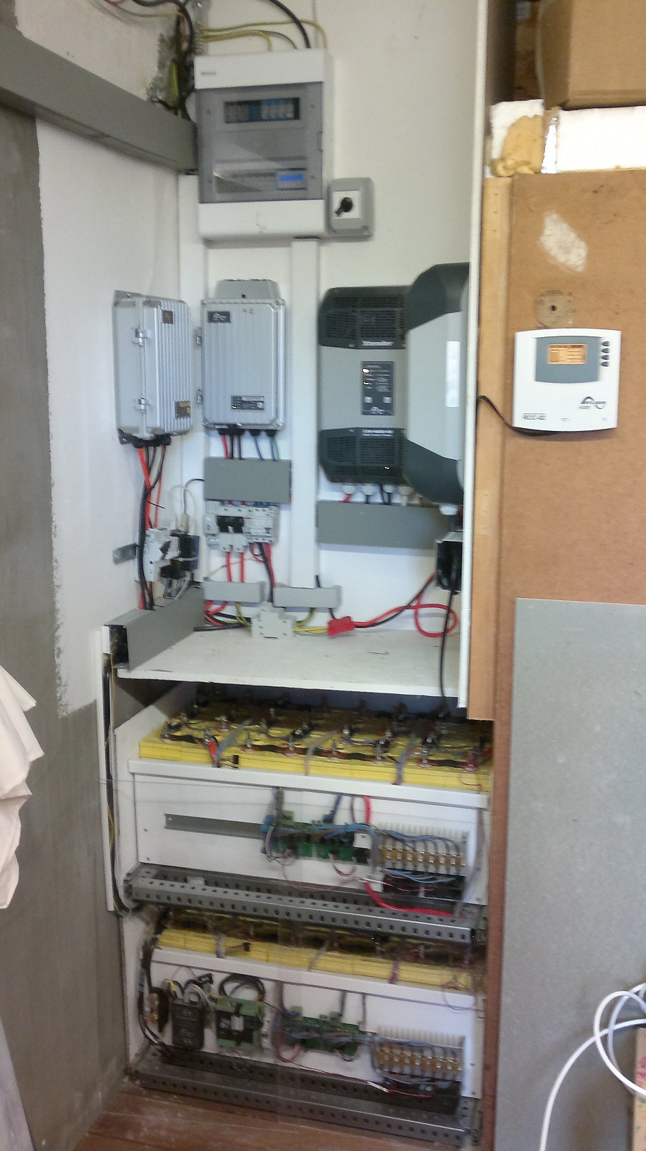 V provozu: ostrov 20kWp s dobíjením z DS, 6x XTM4000-48, 4xVT80, 80kWh LFP + Batrium
