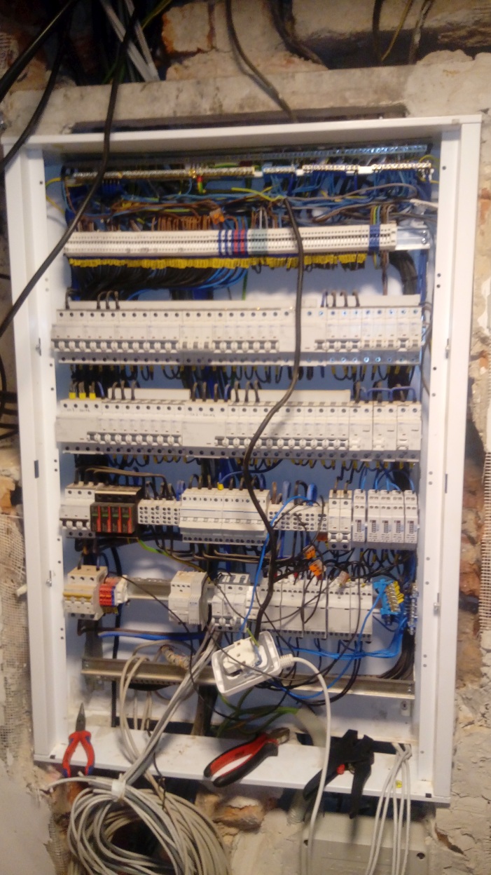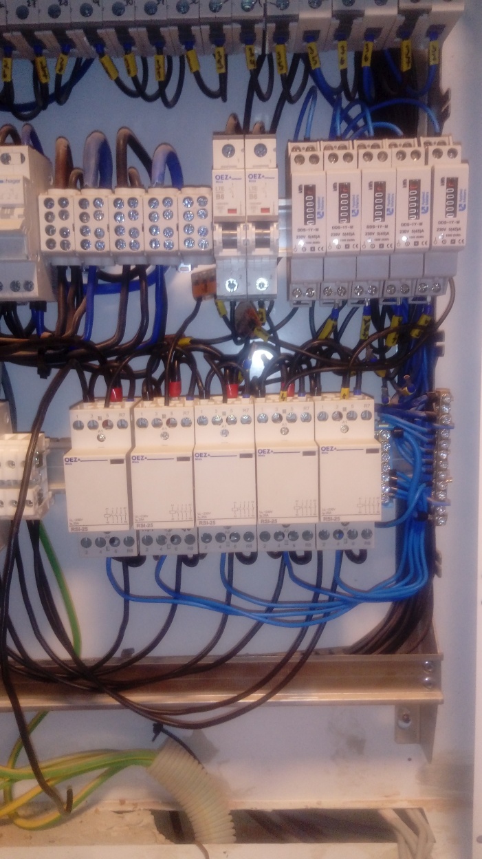 No od zapojení vše chodí na první pokus. přidávám fotku domovního rozvaděče s kaskádou schema zapojení je totožné se zapojením Ing. Trochty, jen o jeden stykač více ( jelikož mám verzi fw. maličko jinou tak mám jedno SSR relé, kaskádu o max 5 stykačích, a jeden výstup PWM na řízení klimatizace). O klimatizaci a vytěžování přebytků toho jistě zplodím více až to bude aktuální zatím klima leží uskladněná.