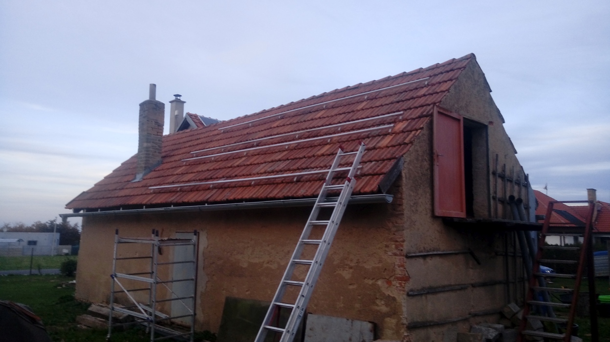 Tzn obsah bude montáž konstrukcí ( doufám že mám dost držáků, zkontroluji), klasika řezání tašek, vrutování držáků, šroubování profilů nějaká zámečničina, a jako vrchol by bylo usazení.