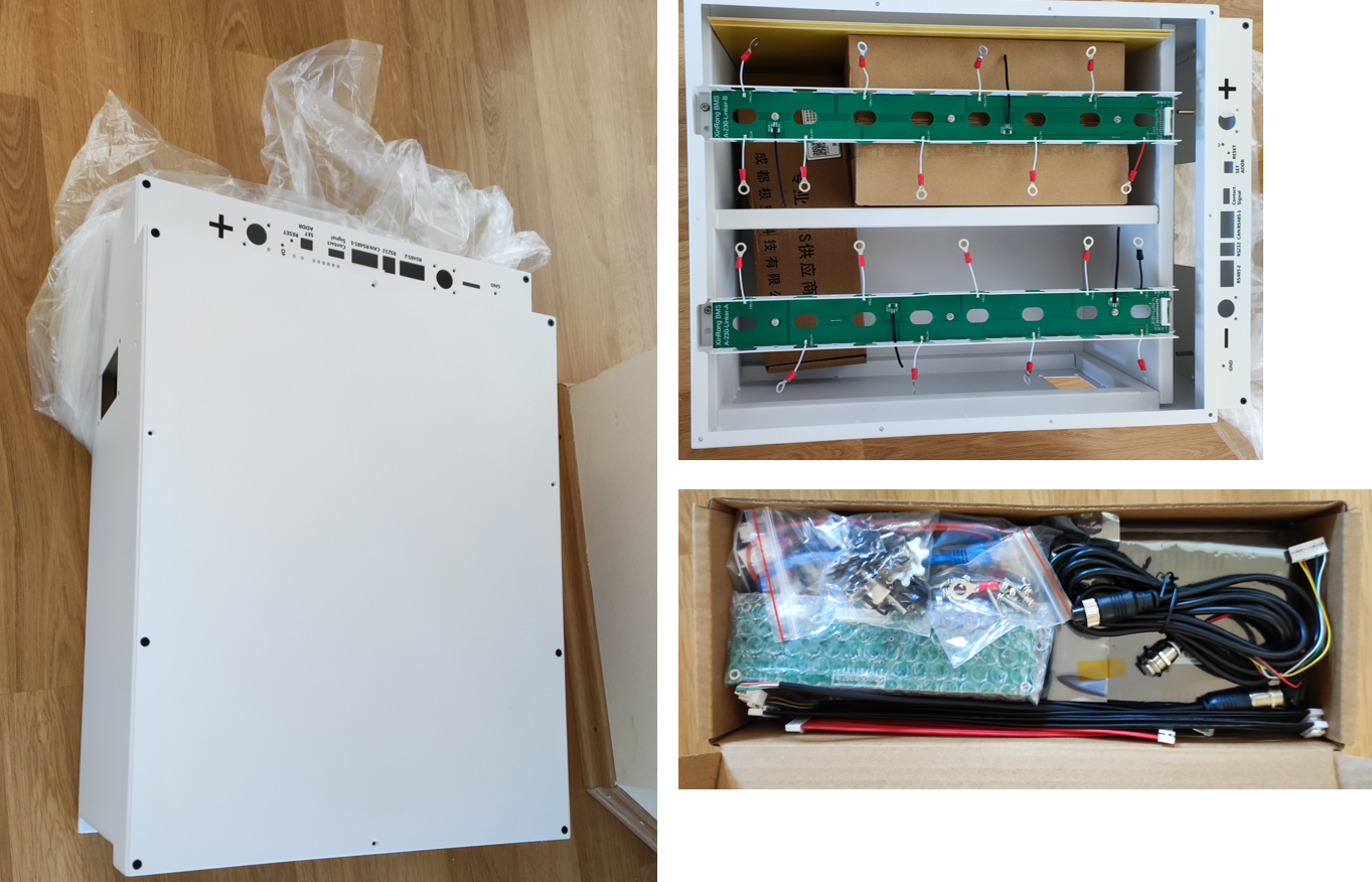 Tu sú obrázky z montáže (btw. bez návodu). V bielej plechovej krabici (dosť hrubé steny) bola kartónové krabica, kde bola JK-BMS, konektory, display, prepojky, ...