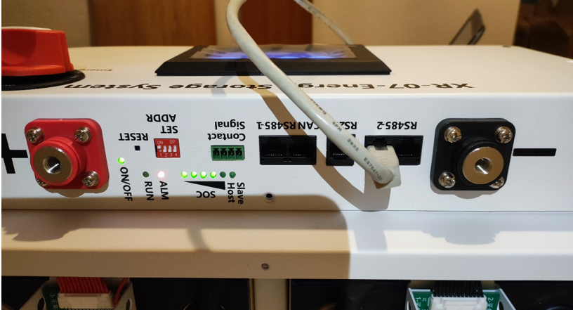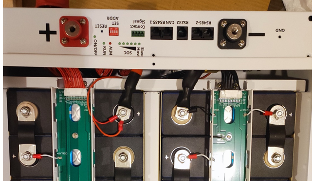 Ešte som aktualizoval FW BMSky pomocou PC aplikácie - cez RS485 port. Musel som si spraviť kábel kde na jednej strane mám prevodník USB-RS485 a na druhej je na kábli štandartná koncovka RJ45 - zapojené len A,B signaly RS485. Musel som zmeniť adresu na inú ako 000 BMS-ky, inak nešlo updatovať. V PC aplikácii musí sedieť aj komunikačná adresa BMS. Vyzerá to tak, že konečne je možné paralelné radenie komunikácie BMSiek. Box som pripojil na batériovú zbernicu 50mm2 káblami, na boxe sú prípojné body so závitom M8. Pozor manipulácia s hotovým boxom je obtiažna, má niečo cez 60kg.