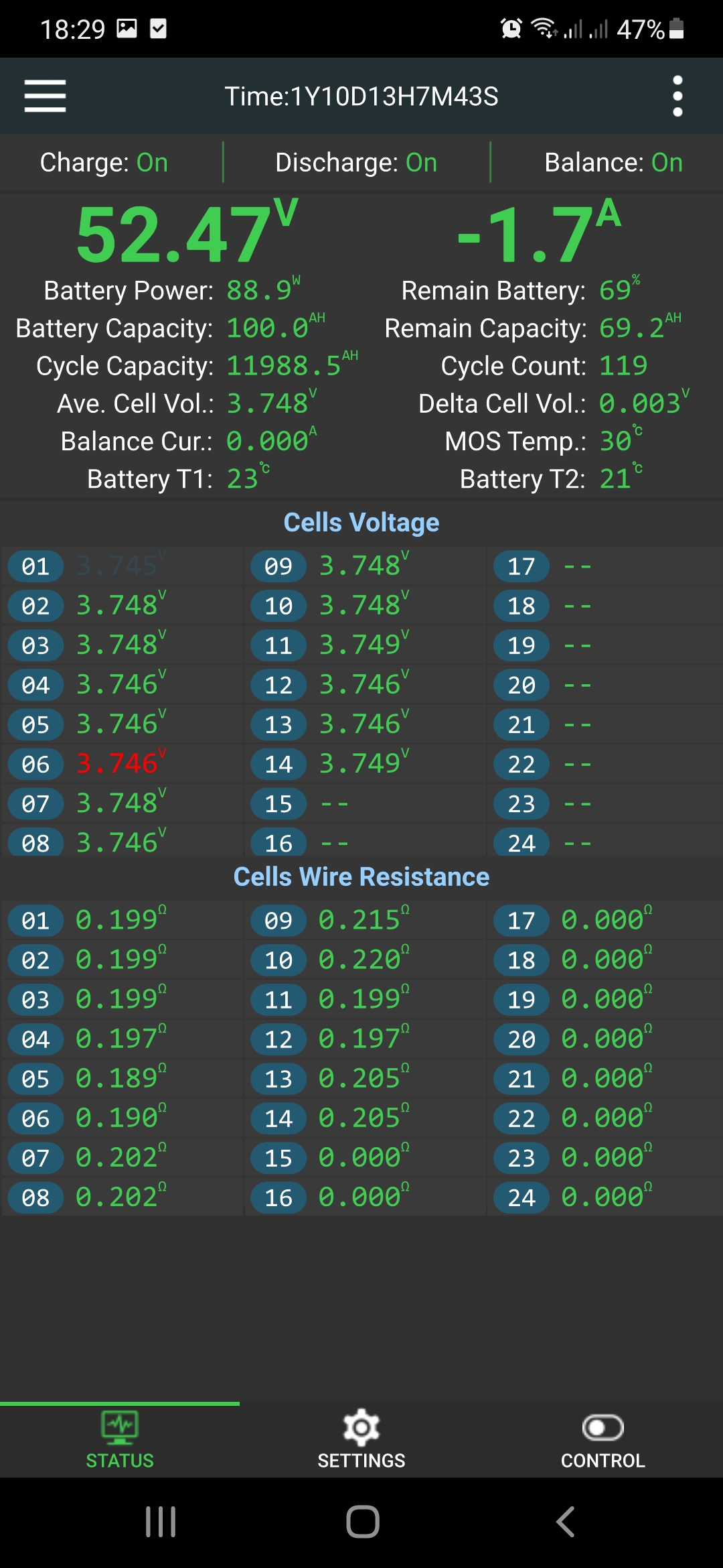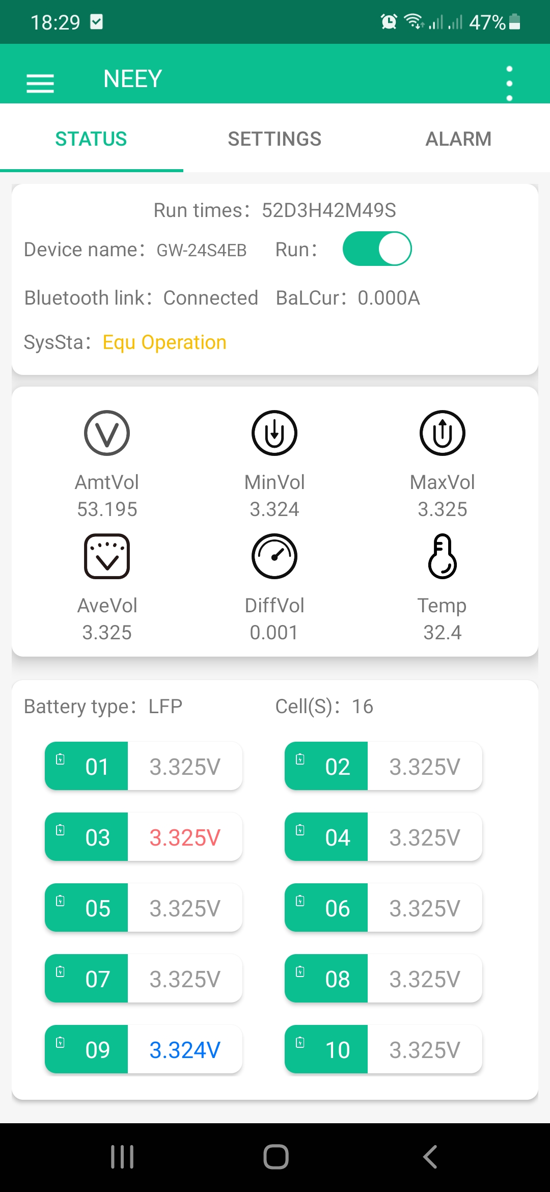 Asi dva mesice zapojena sice len prelevacka NEEY na 240Ah lifepo,clanky vypadaj dobre.