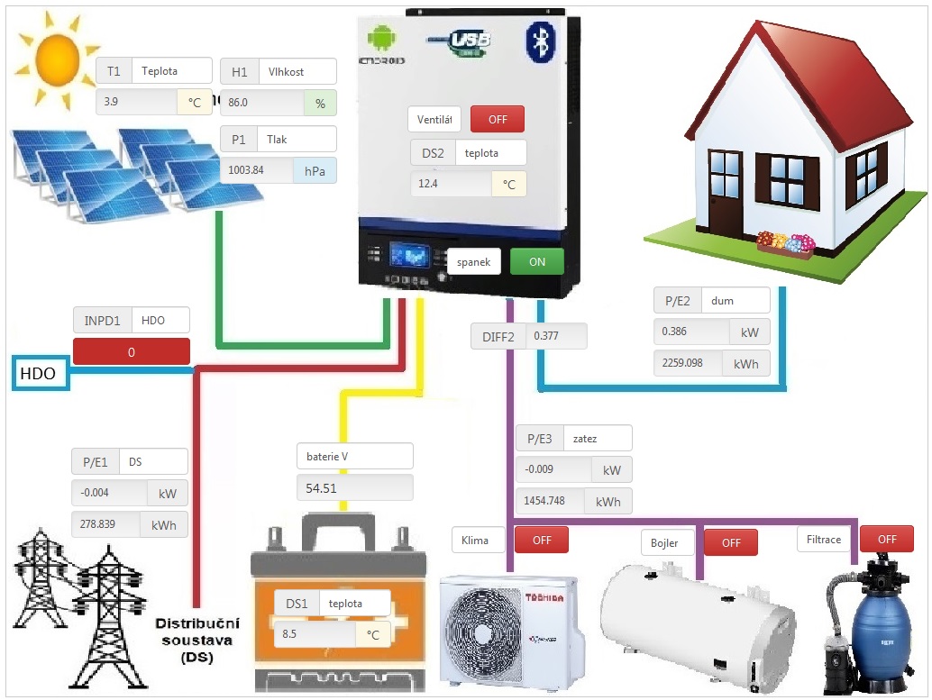 Do podpisu jsem si přidal link na MQTT, kde je pár vybraných údajů z mé instalace. Pokud by to někoho zajímalo. Je to "zimní" verze grafu, kde mne zajímá (krom jiného) například teplota v batery boxu, nebo signál HDO kvůli dobíjení. Letní verze grafu pak sleduje vytěžování, chlazení rozvaděče a tak. Na tu link změním, až přejdu na letní režim.