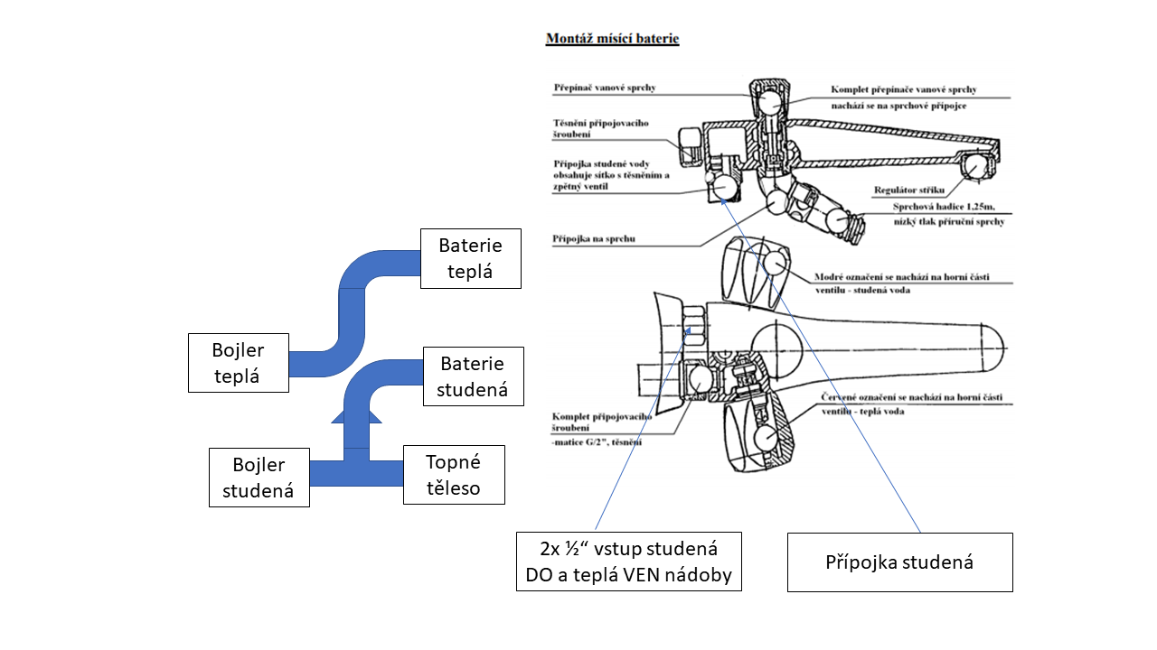 Jasne to je pokud je baterie řešena takto ale baterie řešené beztlake pro malé bojlery se připojují jen na studenou. A jelikož tu byl nákres že se voda připojuje z vrchu na baterii netušil sem jak je to reálné řešenékodl69 píše:musí se nějak dostat z bočního vývodu toho T zpátky na baterii, to je snad jasný. Na studené bude stačit prodloužení...