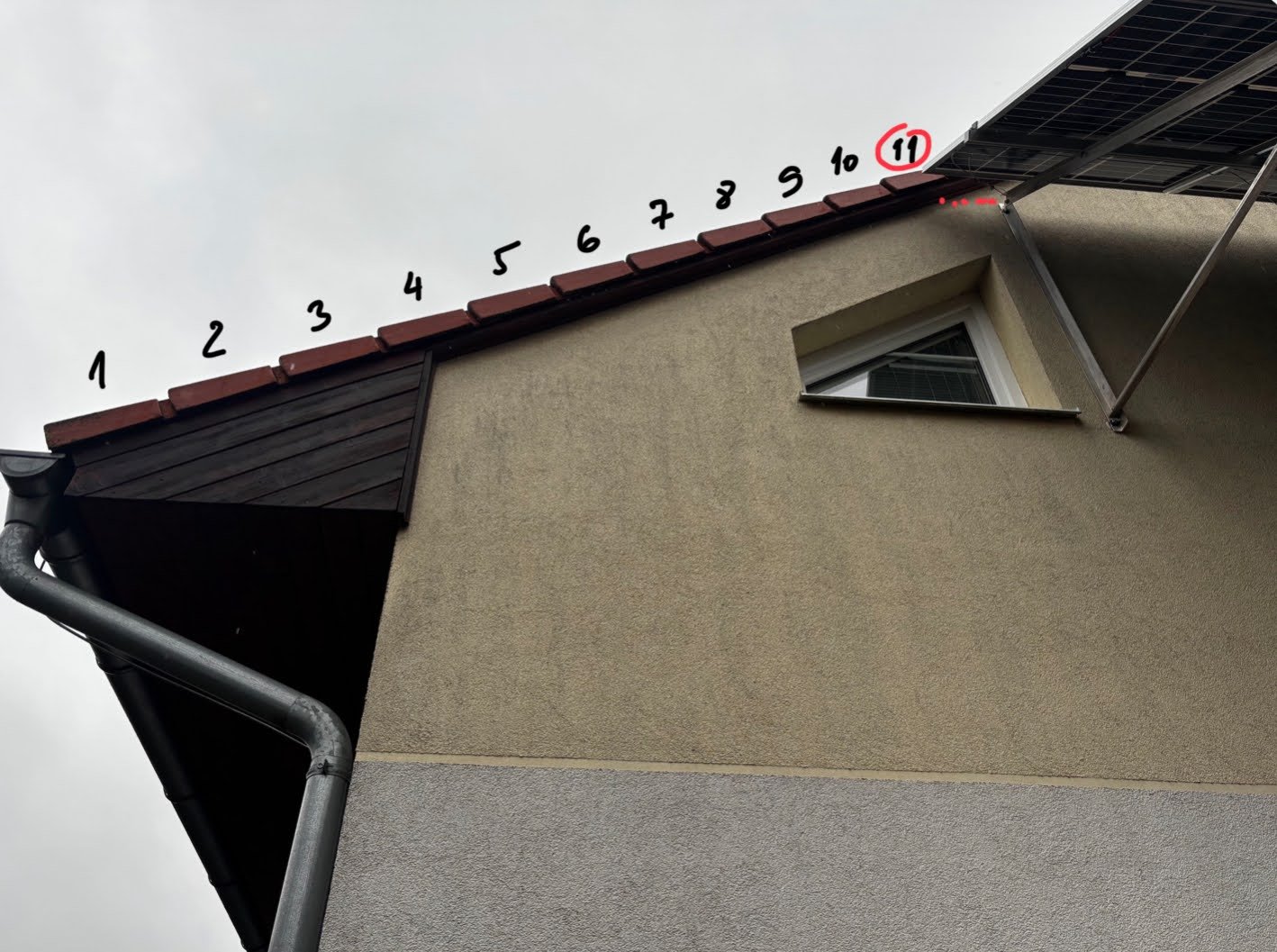 Na původním obrázku, bez omítky se střechou, se zdá překlad na 12. řadě tašek od spodního okraje. Podle aktuální fotografie je vidět horní úchyt na úrovni 11. řady takže by to mohlo být těsně pod překladem.kodl69 píše: stř bře 12, 2025 6:28 pmjestli ty úchyty nejsou výš než ten věnec, tak je to v pohodě. A jak píše sindyk, plechový L kterým by byla vaznice spojená s betonem věnce by byla jistota (samozřejmě nejlíp na obou stranách domu.