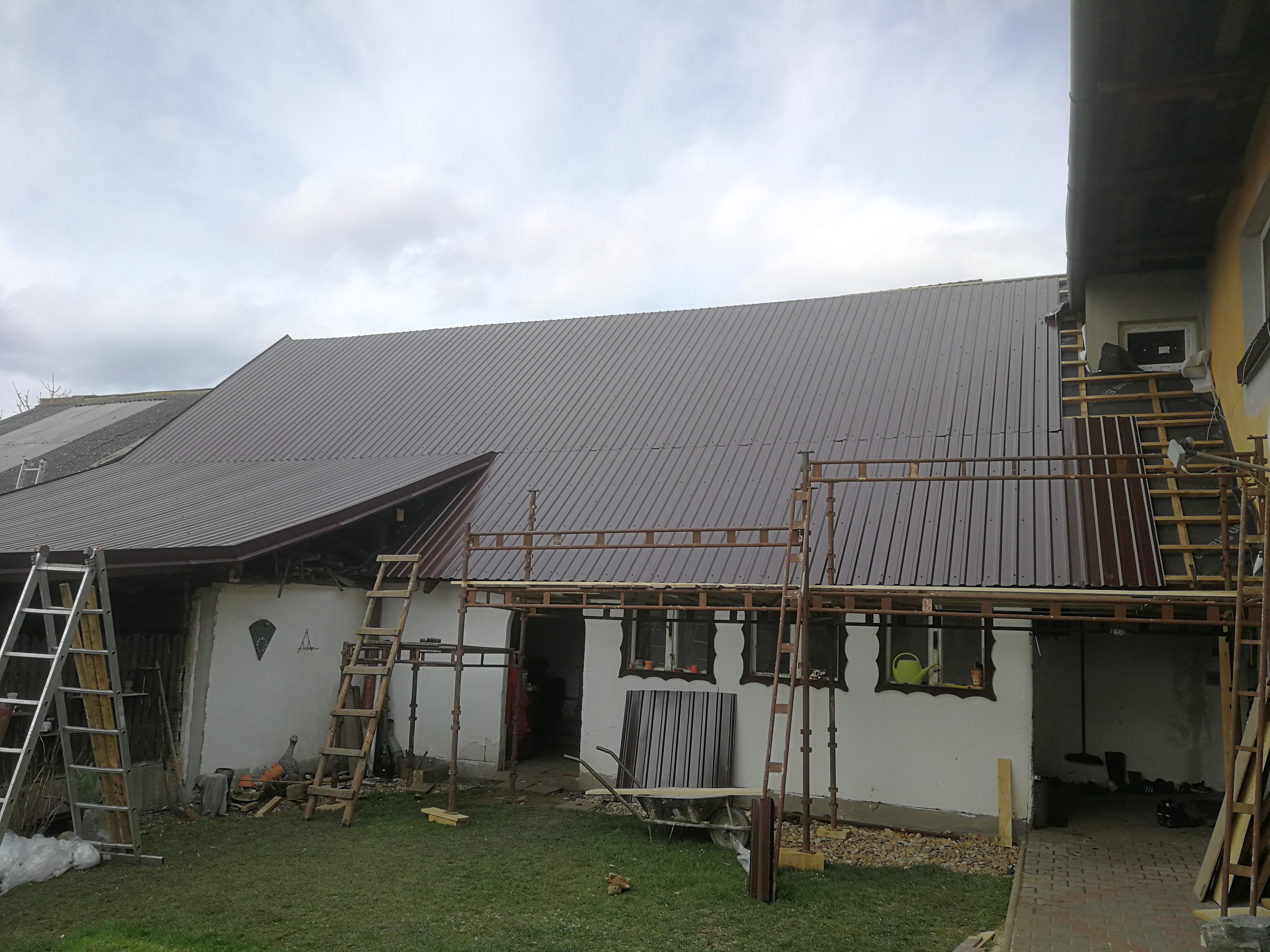 Tak si jdu pomalu za svým... Střechy pro první fázi již dokončuji. Jakmile se z toho trochu vzpamatuji a přestane všechno bolet, tak příjde na řadu fotovoltaika. Chráničky protáhnu v trapézu v hřebeni...
