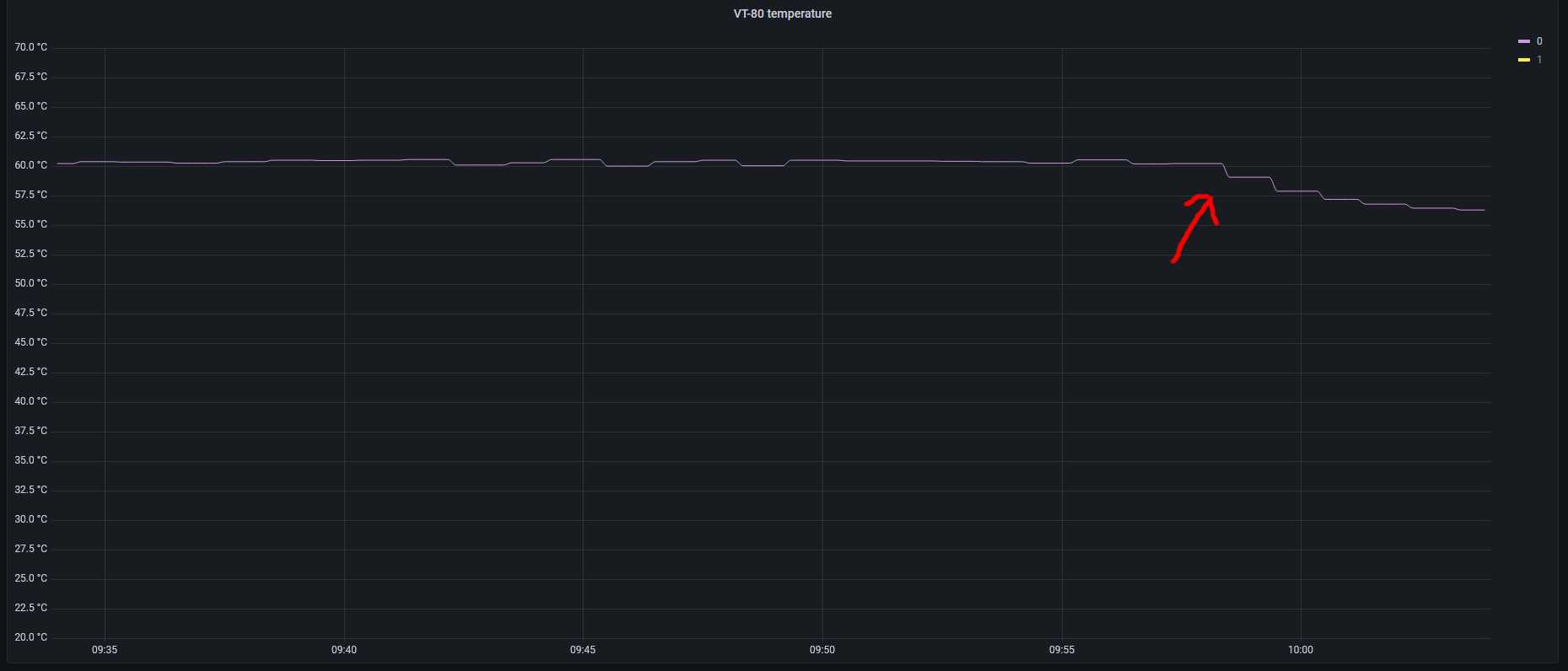 U mne to same. Problem je v teplote VTcka. Mam vse monitorovane online(influx + grafana), takze je krasne videt, jak VT prepina z 80 na 65 pri zvysene teplote. Limit pro prepnuti je asi 60 st (parametr 11045 a 11046 - user info, da se taky vycist primo na portalu studer).Bacha, pokud jsou dve VT v systemu, vycita se jen Master. Slave si vyctes jen "lokalne".Pokud je tedy prehraty Slave, neni to na portalu videt. Vse se skutecne jevi tak, ze je vadny kablik na vrchnim vetraku....Ale neni. Zajimave je, ze se pri prepnuti na 65A neroztoci vnejsi horni vetracky. Pri pootevrenych dvirkach vse jede na plny vykon.beethowen píše:Ahoj Lukáši,LukasK píše:Mám prosbu na ty co mají VT80.