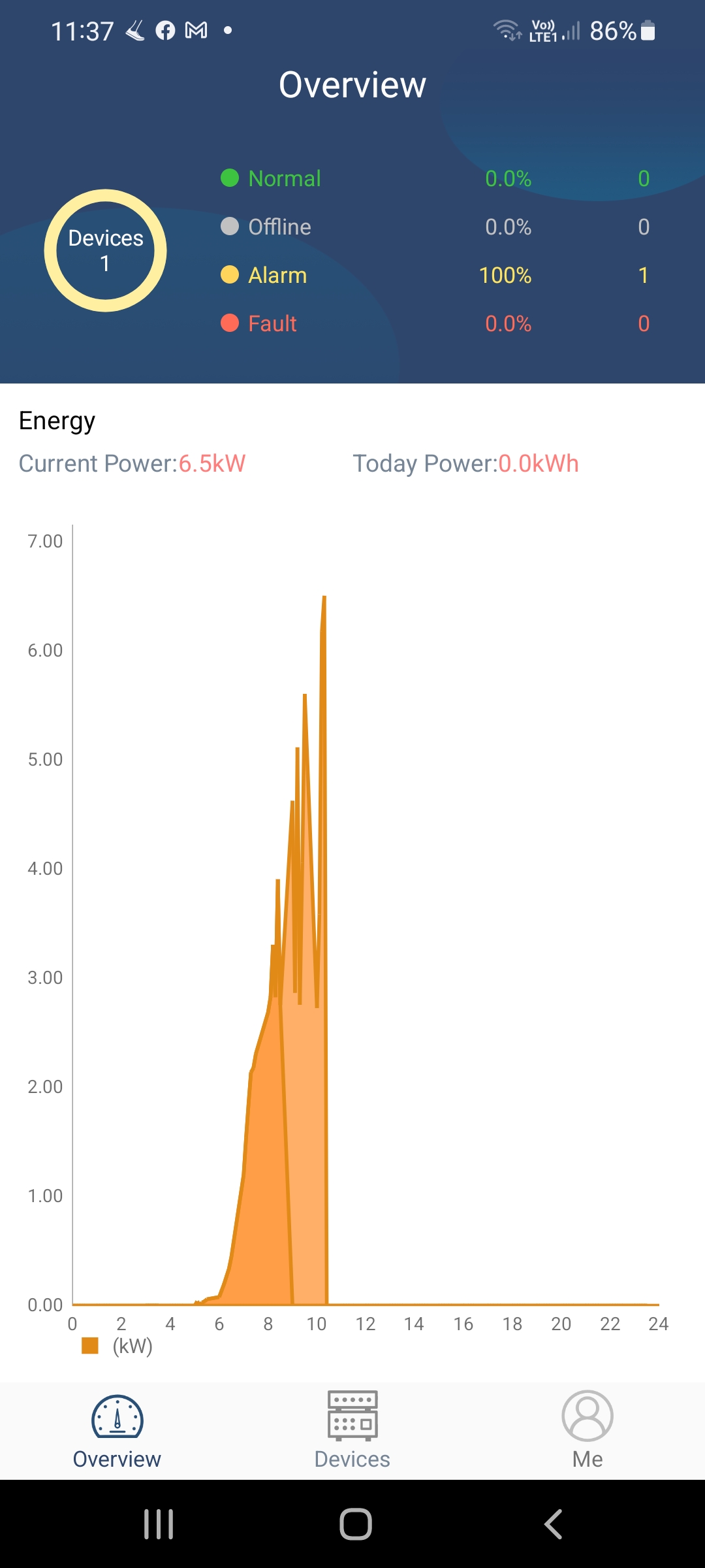 Mne už večer ukazoval iba polovicu kWh, ako keby výrobu iba z jedného meniča a niektoré dni neukáže výrobu vôbec.