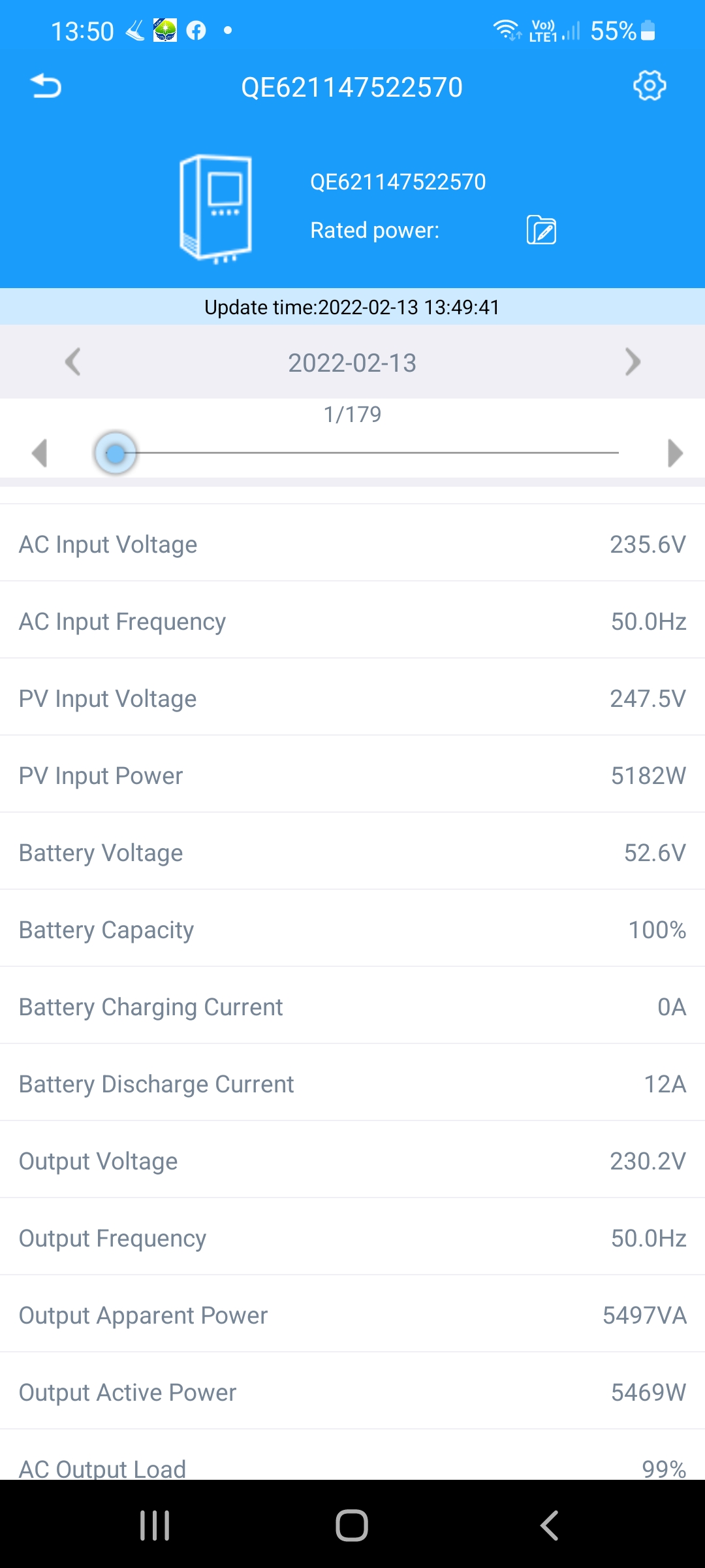Má mppt 6KW a AC výstup 5,5kVA.Podívej se na hodnoty sám.kuli píše:Dnes to z neba ide ! Ako si sním spokojný ?