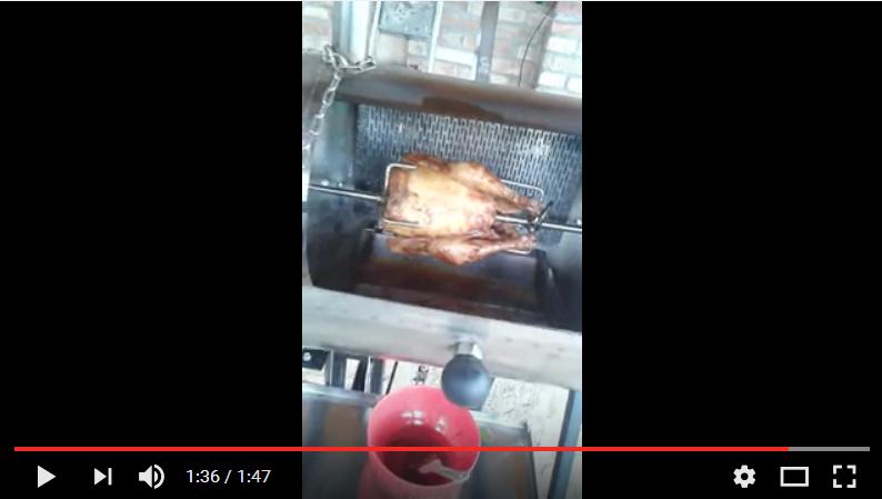 Tak kuře se už točí díky stirlingu. Pět hodin v kusu. Malý zdroj je na řemeničce nyní nezapojený těsně pod grilem , spotřebičem je malá svítilna co osvětluje desku pod grilem.