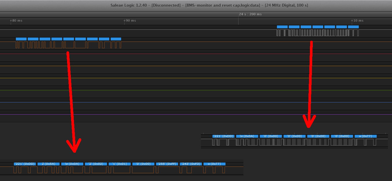 Ahojte, tak som sa k tomu dnes konečne dostal, zapojil som logický analyzátor Saleae Logic 8, pripojil originál BT modul do JBD, zapol capture a cez aplikáciu som pustil "Reset remaining capacity". SoC sa upravilo podľa nastavených úrovní v aplikácii a BMS odpovedala, že vykonala zmenu. Celé je to aj na githube - https://github.com/syssi/esphome-jbd-bms/issues/63