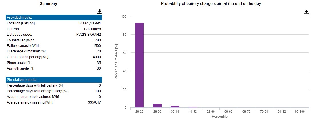 S tím, že takhle se ta 125Ah baterie vybije nejpozději přes noc na 20% a druhý den může zase sbírat energii, aby se večer/přes noc zase vybila a takhle každý den.