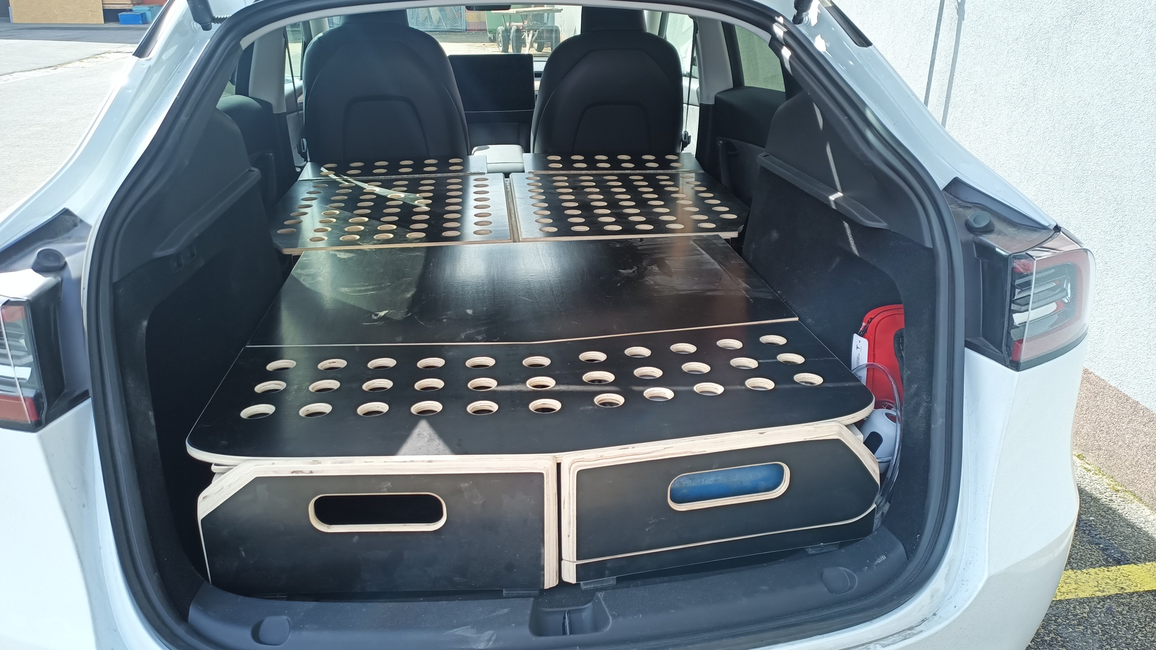 EV Tesla Y long range- 378kW/493Nm/1933kg/ 4750mm/854l kufr zadní+ 120l přední+mega dalších schránek a míst+zadní sedadla v rovině 2000mm lehací místo/4x4 fungující-spotřeba reálná 15.6kWh/100km (50/50 dálnice a zbytek)