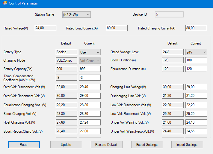 Load výstup (ač jsou v menu i jiné možnosti, tak to nefunguje) těch "malých" epeverů se ovládá nastavením Under Voltage Warning, takže když si, v případě třeba 24V systému, na ten Load výstup připojím stykač s 24V cívkou, tak mohu vytěžovat třeba do bojleru. Vzhledem k tomu, že tam samozřejmě nastavím vyšší hodnoty, než výchozí (chci vytěžovat, ne řešit nízké napětí), tak sice regl nadává, ale funguje to.