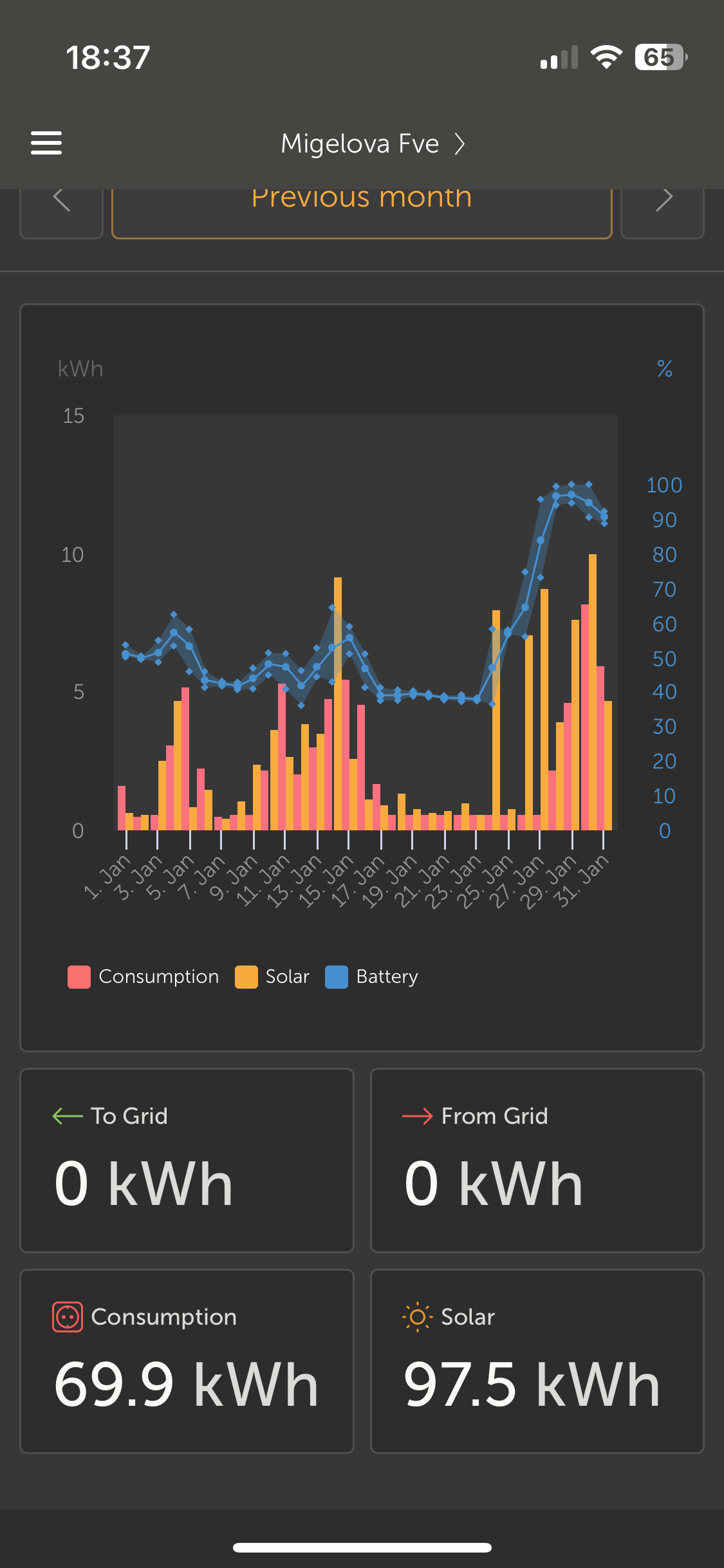 Polovica panelov ostala este v garazi ktora pojde zasa na dom,tiez JV strana. Inak januar radsej komentovat ani nebudem vo vyrobe! Bola to riadna bieda a spotreba z DS jak by dal... Ale aspom po viac ako mesiaci sa samo resetovalo soc