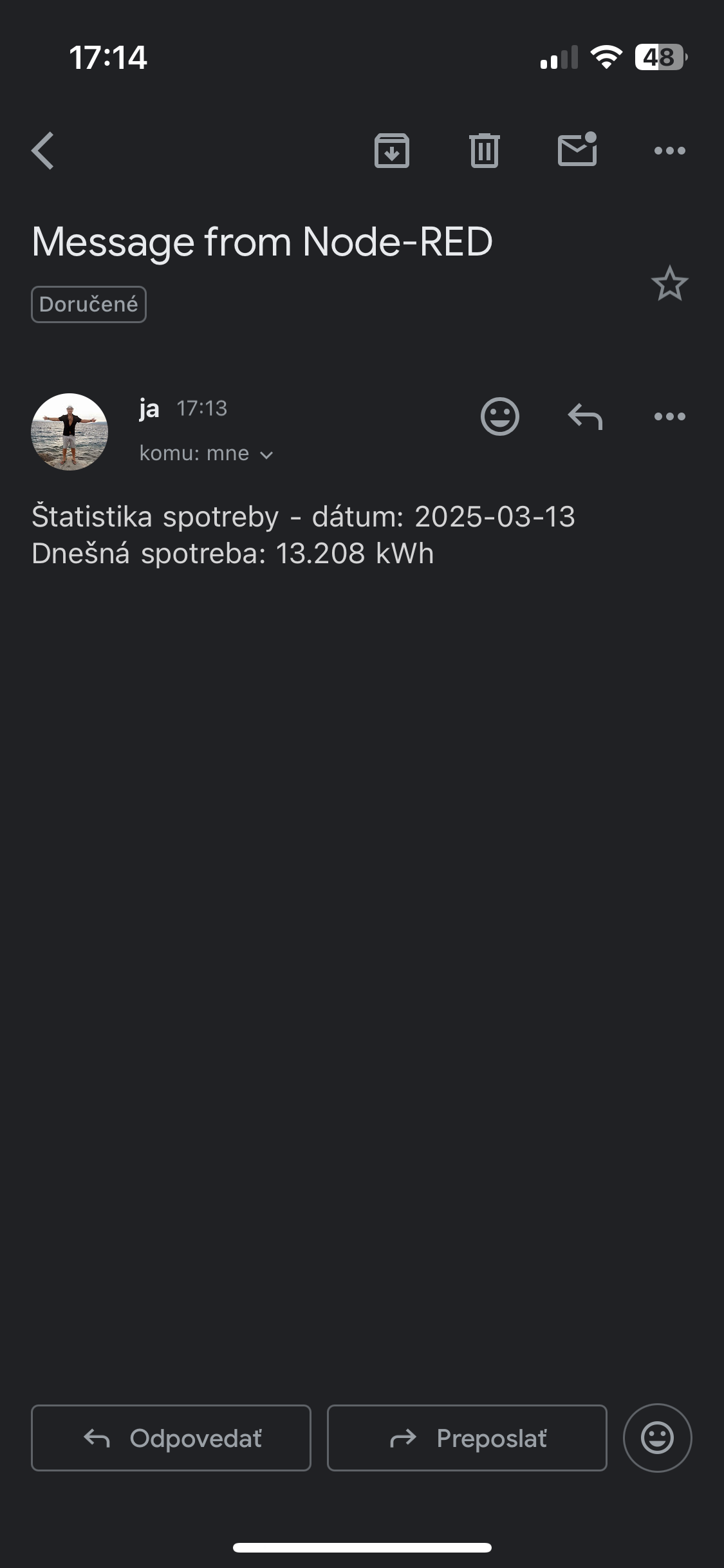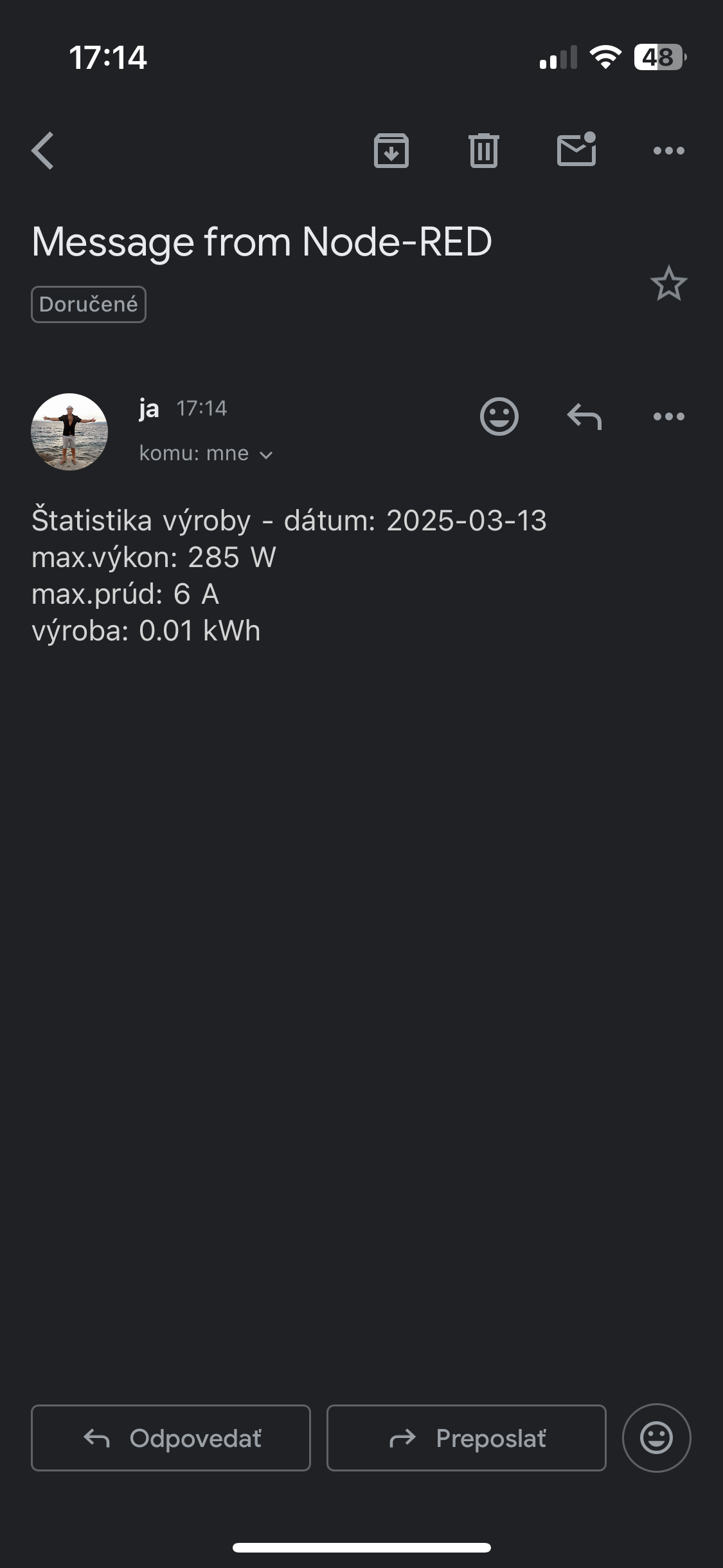 Neska sa mi podarilo rozchodit maily z nodered zatial len ako informacia/statistika niektorych parametrov ktore si rad zapisujem na papier ale niekedy to nestiham odpisat vcas a uz to potom nemam na dosah.Data si neukladam nikam, zatial to neriesim lebo to je u mna na dlhe vecery...