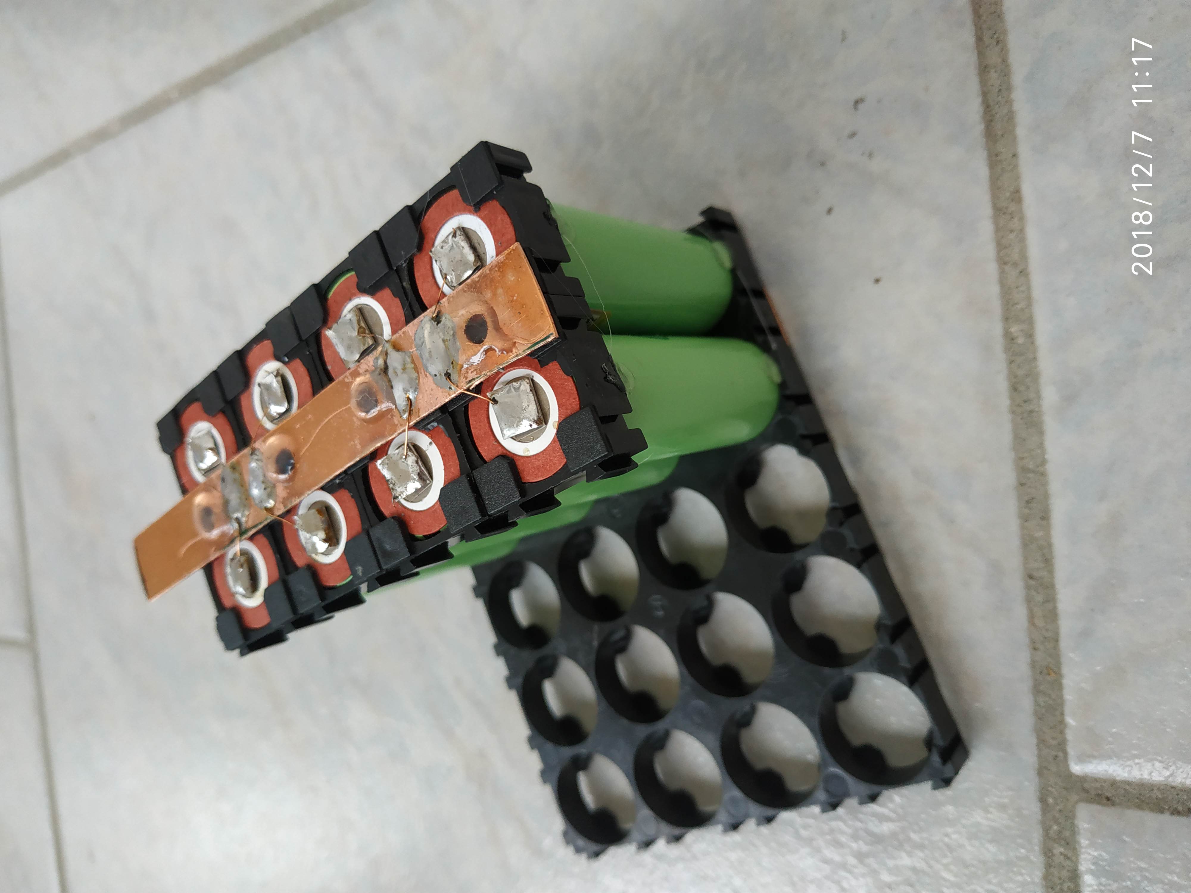 Ahoj, me se vice na vystupu osvedcil misto kulateho dratu => plochy, dobre se to pak spojuje do celku, uchyceni tavnou pistoli pres dirky taky v poho.Jozef51 píše:Musim sa pochvalit. Prva tehlicka 3.7/30Ah buducej baterie. Na + drot priemer 0.3mm (0.07mm2) Na - plochy Cu vodic pocinovany 0.5mm2.