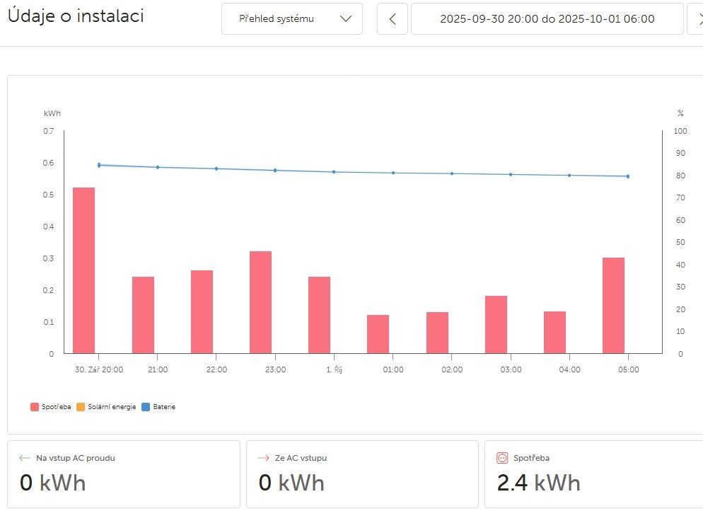 Spotřebu v noci jsem korigoval a přibližná je nyní každý den od 20:00-06:00 cca 2,4-2,5kWh