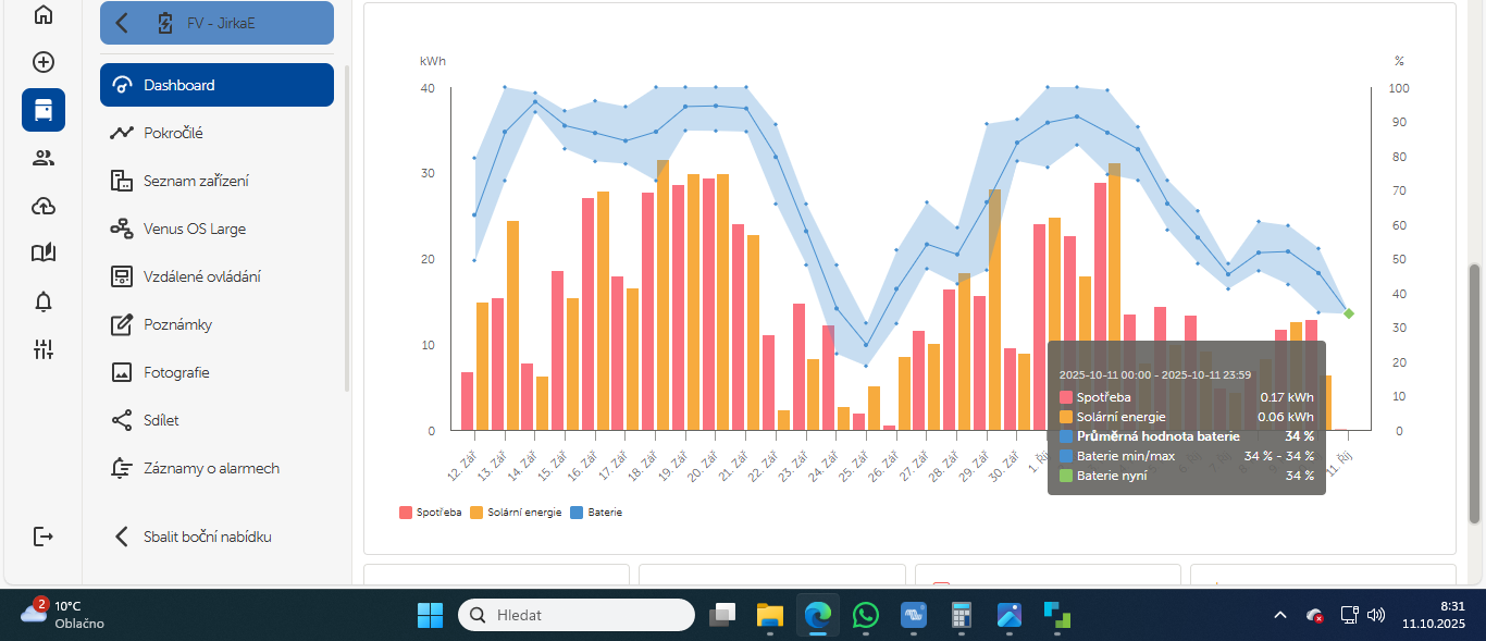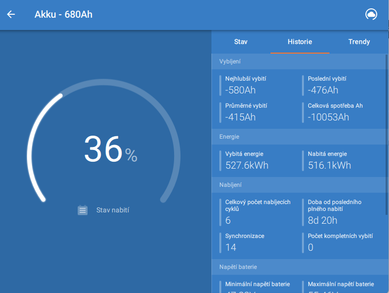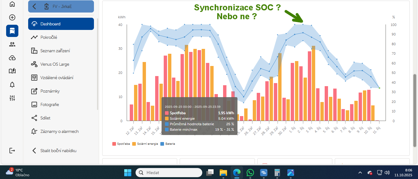 Výše jsi dával obrázek z VRM s otázkou, jestli proběhla synchronizace, tak si myslím, že ne, protože je tam velký rozptyl Battery average min - max.