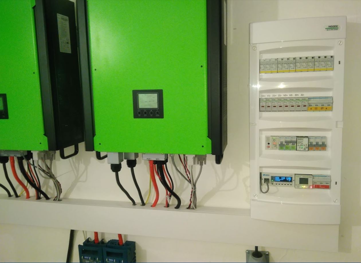 Dotace NE, 6,9kWp ,reg.Harmonie Ver.1, 60A,aku 4kWh LTO,BMS Sokol 400E,řízení Leonardo, LF a HF měnič vlastní Ver.1 a Ver.2, LF Modrá trojka 3kVA,modul HIS,ohřev vody Malibu L.A.3kW,Ver.1