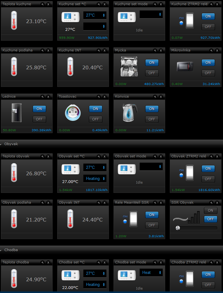 Toto zobrazení je cca 15% toho, co vše mohu sledovat či řídit. Za cenu spotřeby cca 21W: